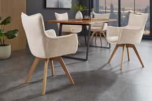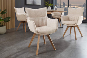 Készülj fel, hogy felfrissítsd otthonod a VOGUE 360° forgószékkel. A gyönyörű bézs színű ülőfelület tökéletesen illik a natúr tölgyfa lábakhoz, modern eleganciát kölcsönözve szobádnak anélkül, hogy fülledtnek éreznéd magad.