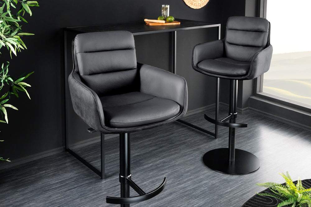A BIG GEORGE bárszék az állítható kényelmet és a tartós dizájnt ötvözi a luxus bőrrel és a masszív fekete vázzal. Forgatható funkciójával, karfáival és támasztó bőrülésével tökéletes választás a stílusos, nyugodt ülőhelyhez bármely otthoni bárpulton vagy konyhapulton.