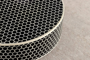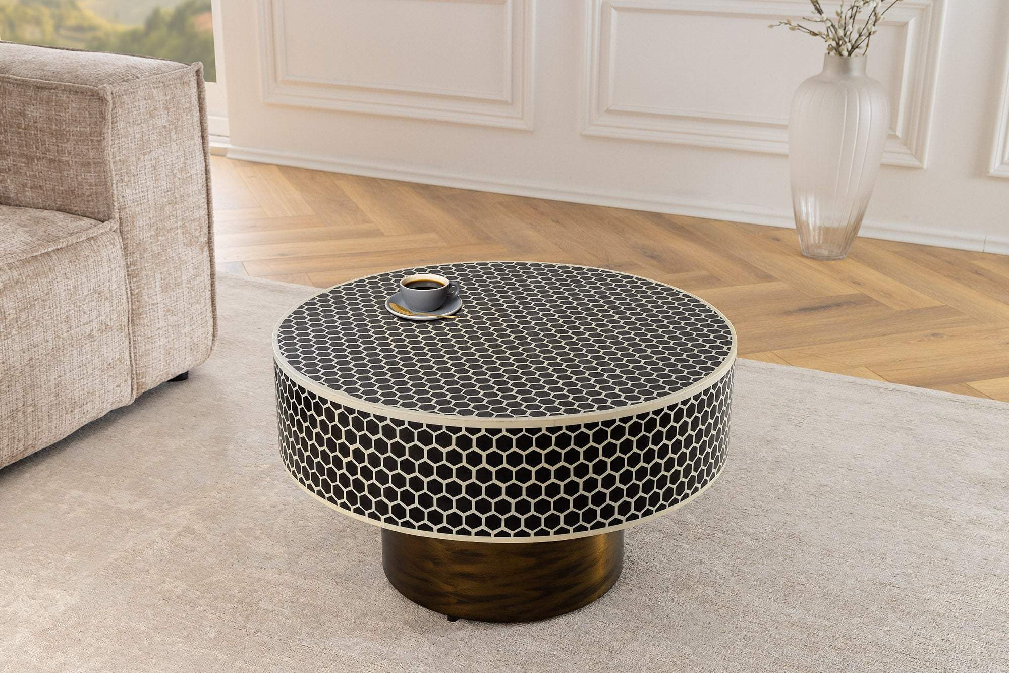 A HARMONY NATURE dohányzóasztal merész eleganciát kölcsönöz kézzel készített fekete-fehér csontberakásával és luxus arany keretével. Ez az egyedi darab kifinomult, egyedi hangulatot kölcsönöz bármely nappalinak, tökéletesen egyensúlyozva a stílus és a praktikum között.