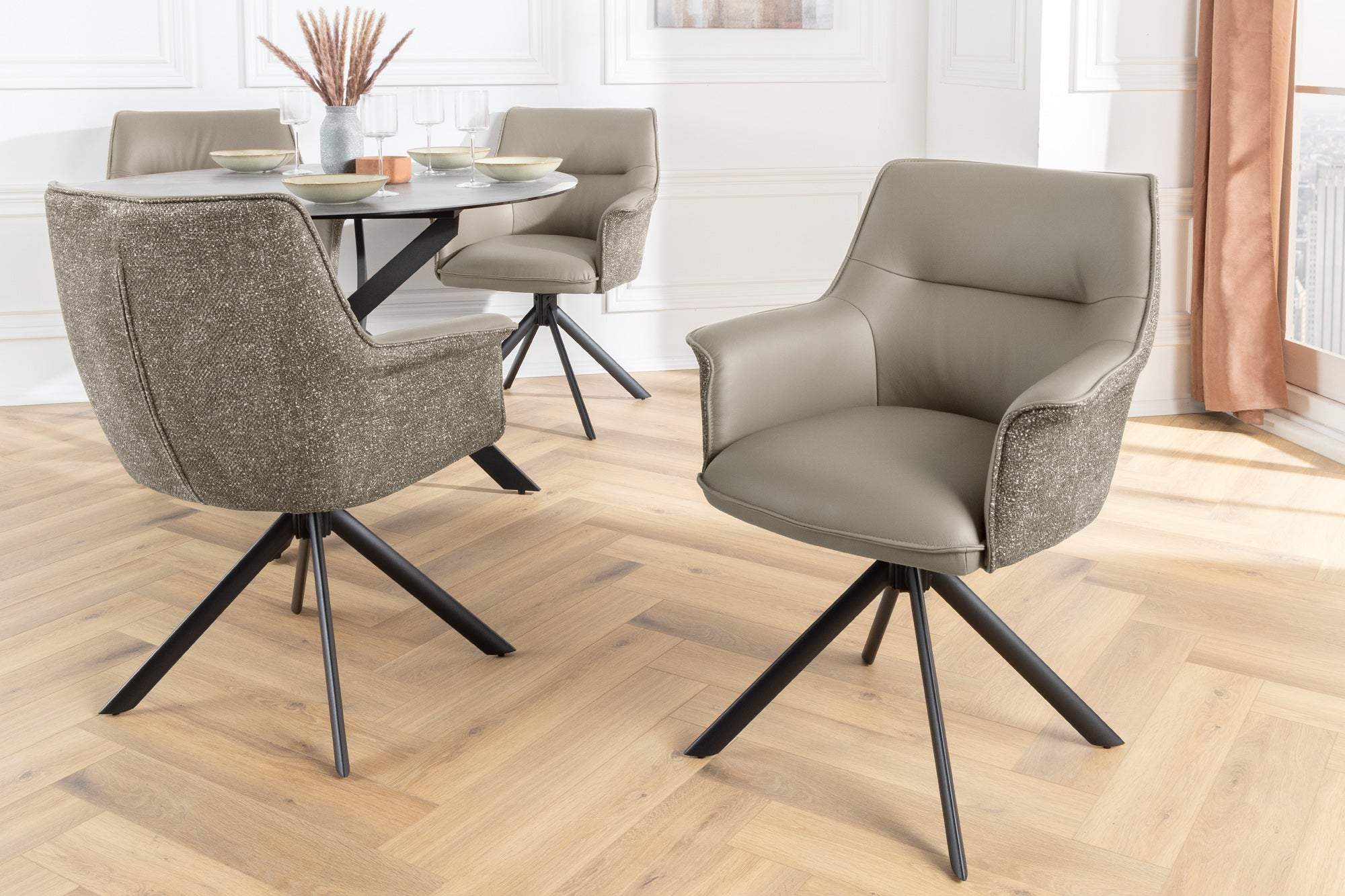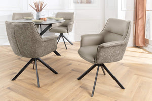 Merülj el a kényelemben és a stílusban a LE GRAND forgószékben, mely puha, bézs bőrrel és elegáns fekete fém vázzal rendelkezik. A sima, 180°-os forgásnak és a tökéletes arányoknak köszönhetően ideális hely munkához, pihenéshez vagy barátokkal való beszélgetéshez.