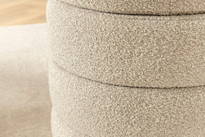 A VOQUE bárszék a sikkes stílus és a titkos tárolóhely tökéletes keveréke, puha, bézs színű buklé anyaggal borítva. Elég kényelmes ahhoz, hogy plusz ülőhelyet biztosítson, és elég elegáns ahhoz, hogy elrejtse a rendetlenséget, így minden modern tér kötelező darabja.