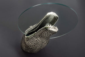 WILDLIFE CROCODILE ezüst üveg lerakóasztal - DODO | Designban Otthon