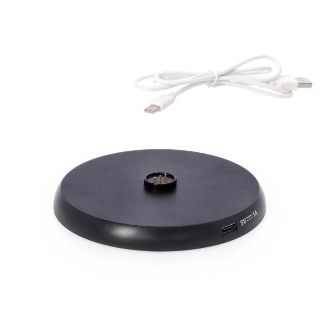 • Újratölthető akkumulátor fekete műanyag töltőtalppal és fekete USB kábeltel