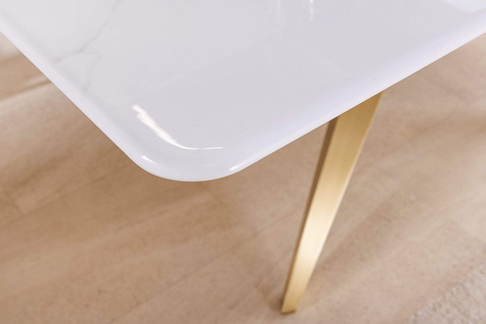 Bemutatjuk az ART LIVING étkezőasztalt – étkezője tökéletes központi elemét, amely a kifinomult fehér márványhatású kerámiát lenyűgöző pezsgőarany kerettel ötvözi. Akár egy elegáns vacsorát rendez, akár csak egy csésze kávét kortyol, ez az asztal minden pillanatot egy kicsit különlegesebbé tesz.