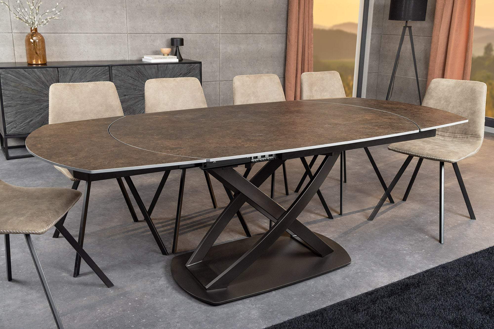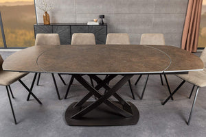 Az INCEPTION asztal minden étkezést remekművé varázsol lenyűgöző rozsdaszínű asztallapjával és elegáns fém vázával. Kihúzható kialakításának és hívogató ovális formájának köszönhetően tökéletes a finom ételek megosztásához és a nagyszerű beszélgetésekhez mindenkivel.