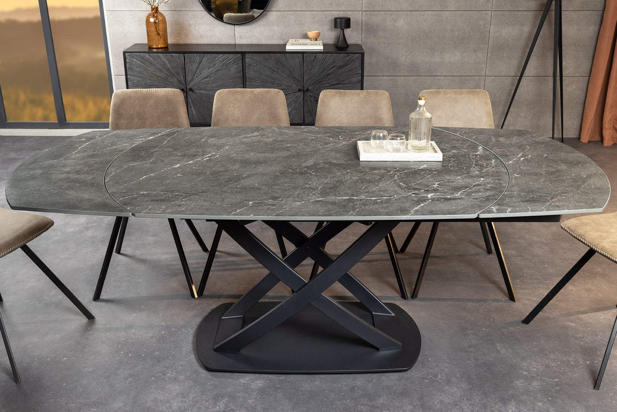 Legyen az INCEPTION asztal étkezője stílusos szíve, könnyedén kihúzható, hogy bármilyen összejövetelhez illeszkedjen. Elegáns antracit márványhatású asztallapjával és masszív felépítésével a mindennapokra és a különleges pillanatokra egyaránt alkalmas.