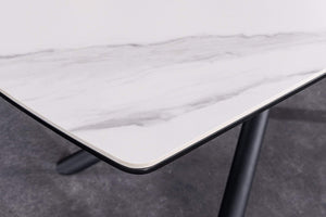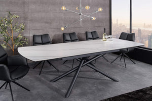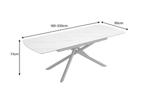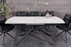 Ragyogtasd étkeződet a MIKADO asztallal, ahol a letisztult fehér márványhatású asztal tartós kerámiával és masszív fémvázzal találkozik. Okos, kihúzható kialakításának köszönhetően meghitt vacsorákat és nagy lakomákat is rendezhetsz vele, miközben a takarítás egyszerű és stílusos marad.