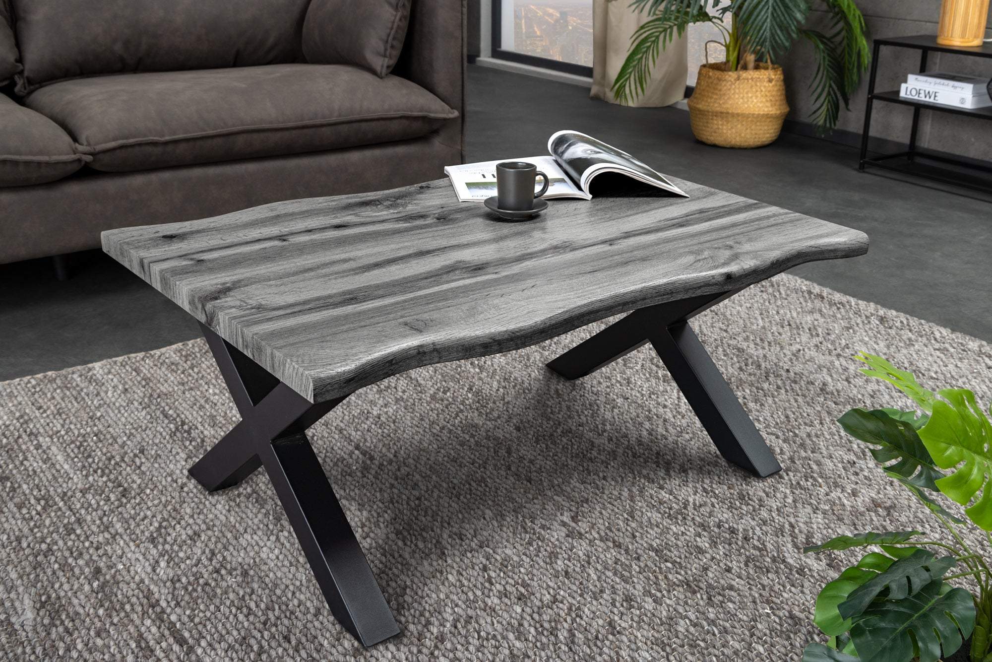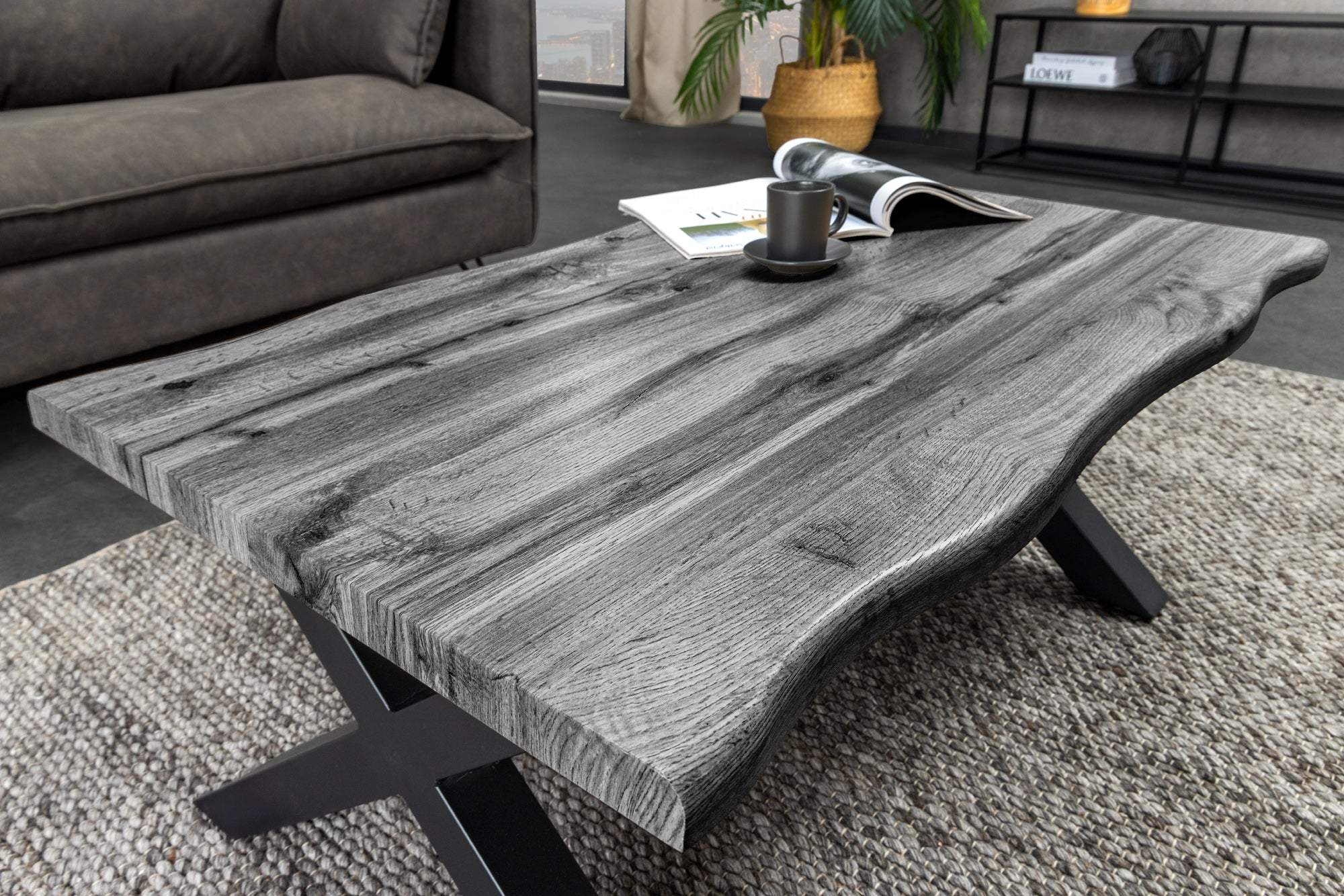 Lélegezzen fel friss levegőt nappalijába a WILD dohányzóasztallal, amely X-lábú, lenyűgöző vadtölgyfa megjelenésű és hűvös szürke színben pompázik. Ez az asztal merész benyomást kelt – halmozzon fel magazinokat, harapnivalókat és dekorációkat!