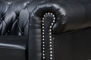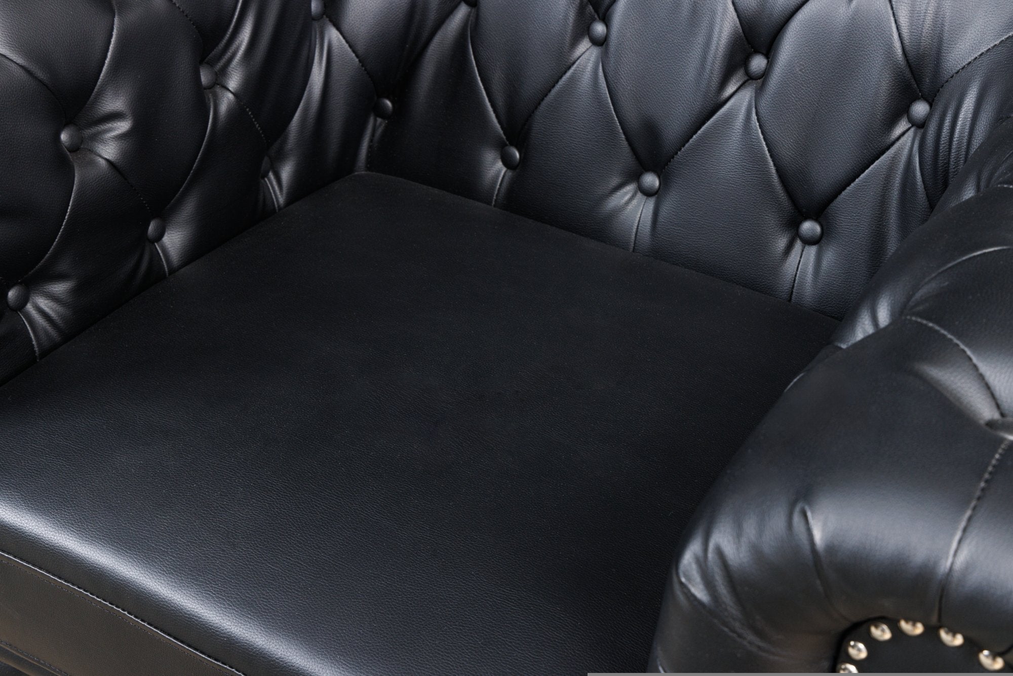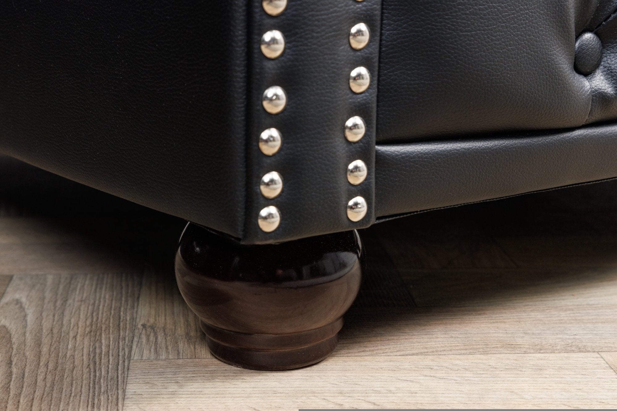 A fotel műbőr bevonattal rendelkezik, amely 100% poliuretánból készült. A fotel tartós pinewood vázzal és lábakkal rendelkezik. A bútorban rugós ülőfelület található, amely kényelmes ülést biztosít. A díszvarrás és a szegecses díszítés tovább fokozza az eleganciát és a stílust.