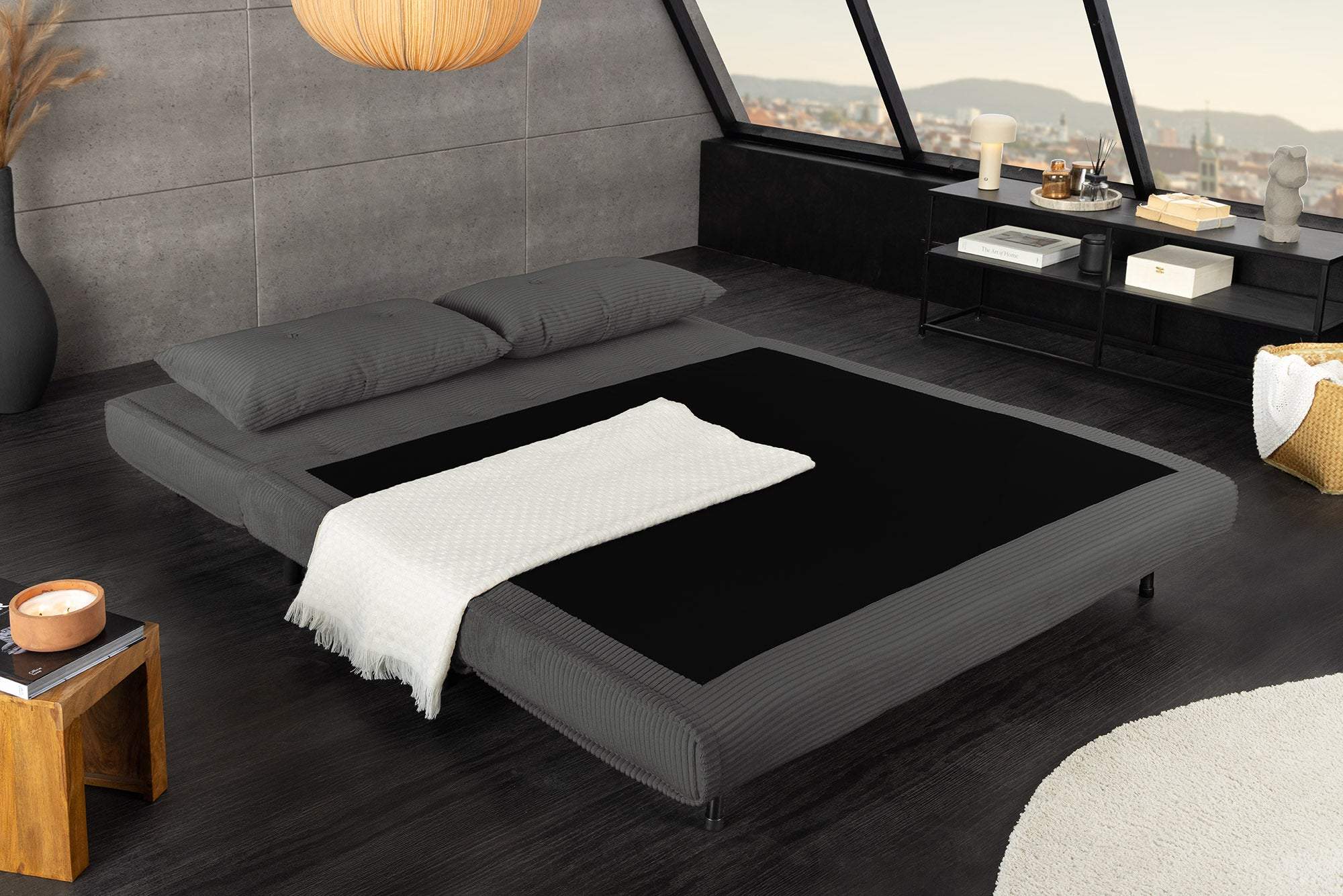 A szürke OKOS MULTIFUNKCIÓS szék több helyet biztosít a pihenéshez, a szunyókáláshoz vagy a vendégfogadáshoz – mindezt anélkül, hogy elfoglalná a teret. Puha kordonhuzatával, tömör fekete lábaival és könnyen kihajtható kialakításával okos módja annak, hogy stílust és funkcionalitást vigyen otthonába.