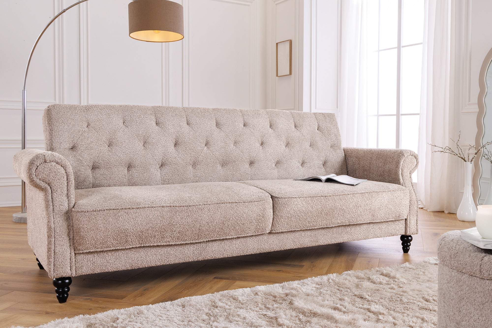 Készülj fel, hogy átalakítsd életteredet a lenyűgöző MAISON BELLE AFFAIRE kanapéággyal, mely gyönyörű, trendi és hívogató szürke buklé borítással rendelkezik. A buja buklé kárpitozás otthonos kényelmet biztosít, míg a tömör, sötétbarna falábak és a lenyűgöző masszív fa lábak stabil alapot és időtlen eleganciát kölcsönöznek.