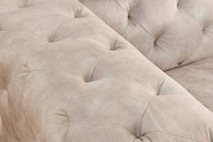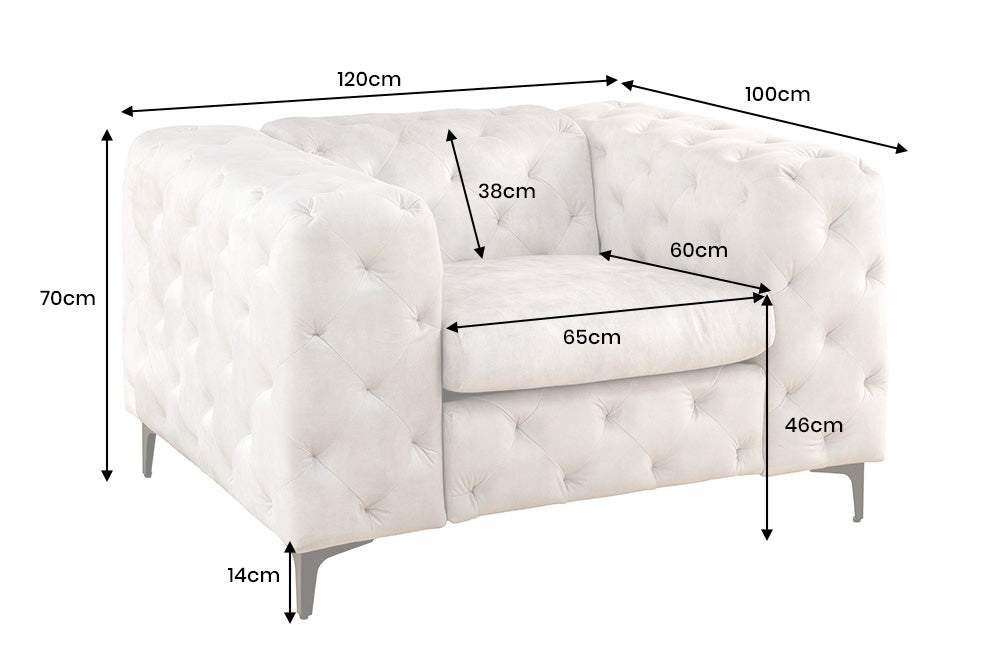 Merülj el a tiszta luxusban a MODERN BAROCK karosszékkel, amely lenyűgöző pezsgőszínű bézs bársonyból készült – ez a nappalid tökéletes kiegészítője! Klasszikus chesterfield megjelenésével és plüss rugós magjával ez a karosszék ellenállhatatlanul ötvözi az időtlen eleganciát és a modern kényelmet.