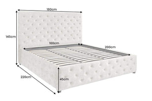 A pezsgőszínű bézs bársonyból készült PARIS ágy a klasszikus chesterfield bájt ötvözi az okos tárolással, így elegáns és funkcionális megjelenést kölcsönöz. Puha kárpitozásának és masszív szerkezetének köszönhetően tökéletes menedék az álomszerű estékhez és a stílusos reggelekhez.