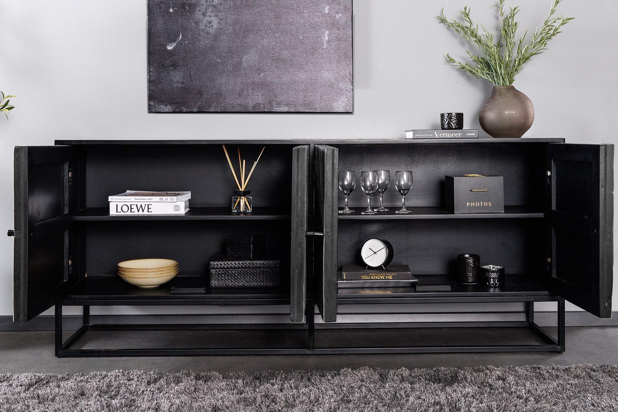 A masszív fém váz és a strapabíró fém lábak stabil és megbízható alapot nyújtanak, biztosítva a szekrény tartósságát és hosszú élettartamát. A kiváló minőségű anyaghasználat és a precíz kidolgozás garantálja, hogy ez a bútordarab nemcsak esztétikai élményt, hanem hosszú távú használati értéket is nyújt.