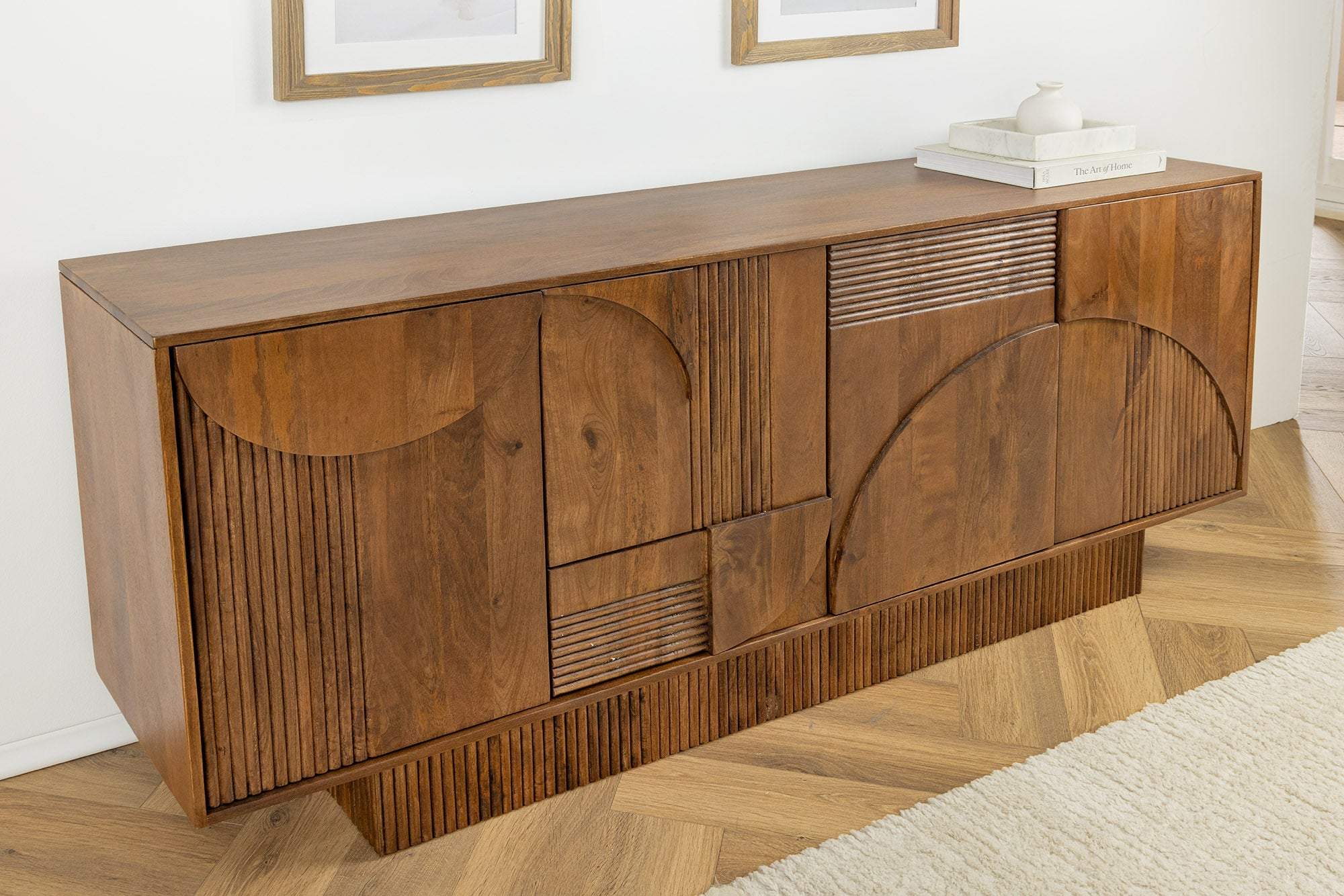 Az ART DECO tálalószekrény vintage bájt és modern funkciót ötvöz gazdag füstölt mangófájával és letisztult dizájnjával. Tökéletes stílusos tárolási megoldás, amely melegséget és karaktert kölcsönöz bármely helyiségnek.
