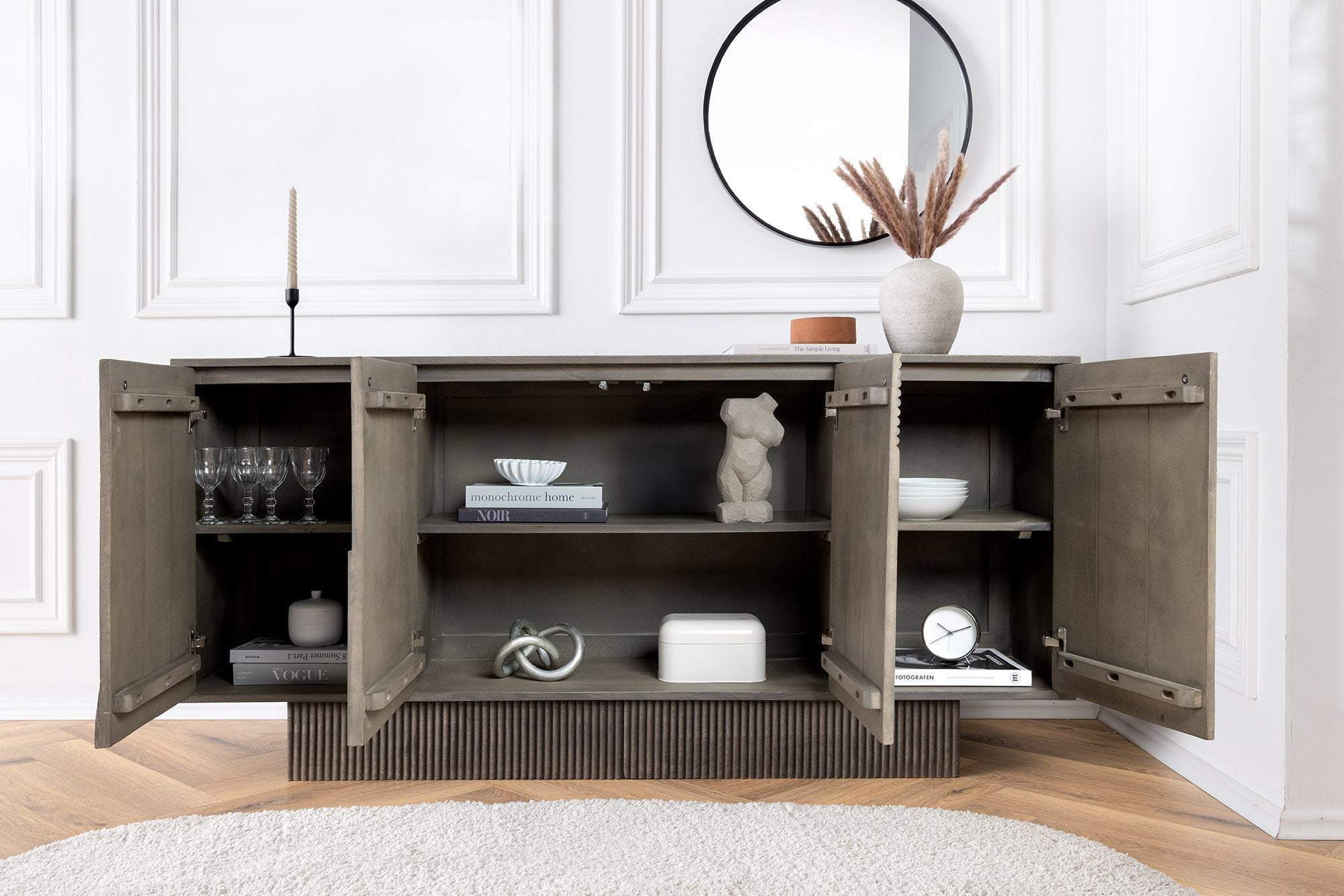 A szürke ART DECO tálalószekrény vintage bájt kölcsönöz modern csavarral – tökéletes, ha stílust és funkcionalitást szeretne adni otthonának. Merész dizájnja és tágas tárolóhelye kiemelkedő darabká teszi, amely keményen dolgozik, és közben remekül is néz ki.