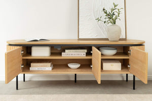 Az ATELIER TV-állvány a letisztult tölgyfa furnér és a merész fekete fém lábak kombinációjával lenyűgöző látványt nyújt bármely élettérben. Okos tárolási lehetőségeivel és masszív felépítésével stílusosan rendszerezheti szórakoztató eszközeit.