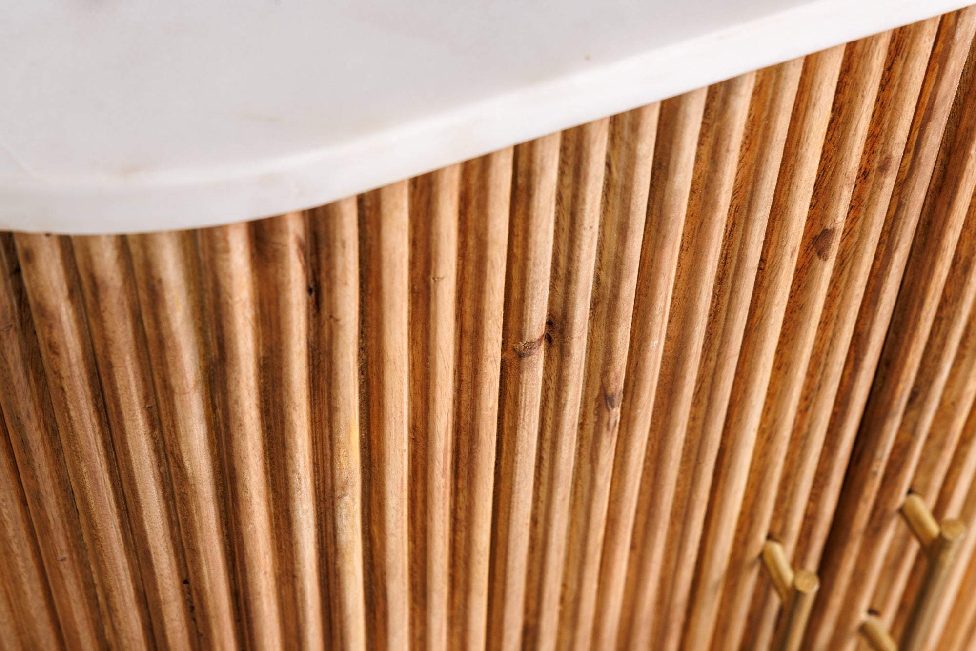 A TRES CHIC könnyed eleganciát visz otthonodba márványhatású asztallapjával, arany lábaival és stílusosan megtestesülő, meleg mangófájával. Rengeteg rejtett tárolóhellyel és figyelemfelkeltő dizájnjával ez a tálalószekrény az a felfrissítés, amiről a szobád nem is tudta, hogy szüksége van rá.