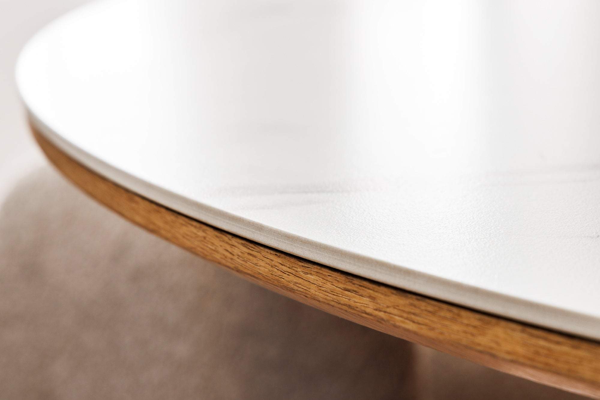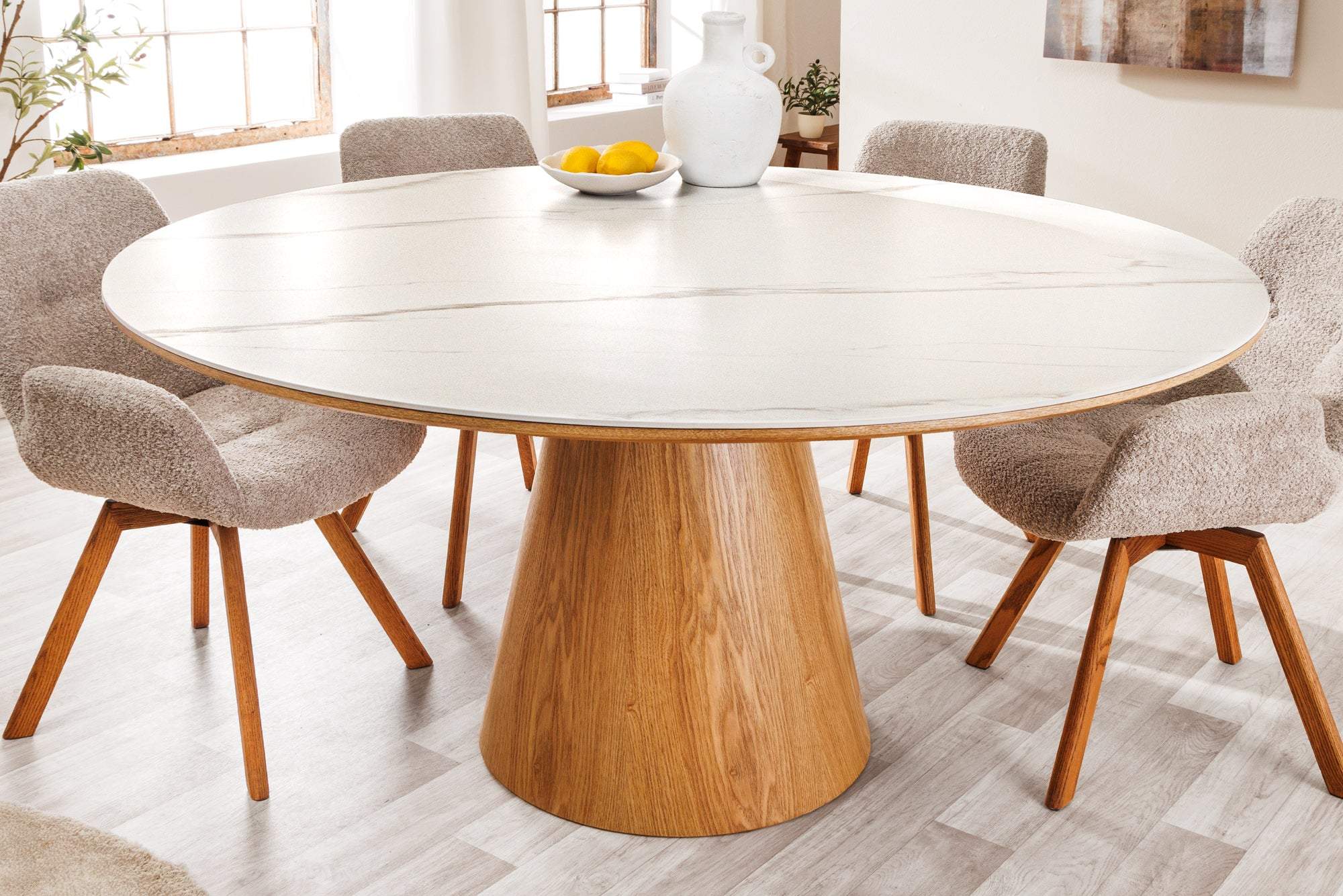 UNIQUE fehér kerek kerámia étkezőasztal tölgyfa vázzal 120 cm - DODO | Designban Otthon