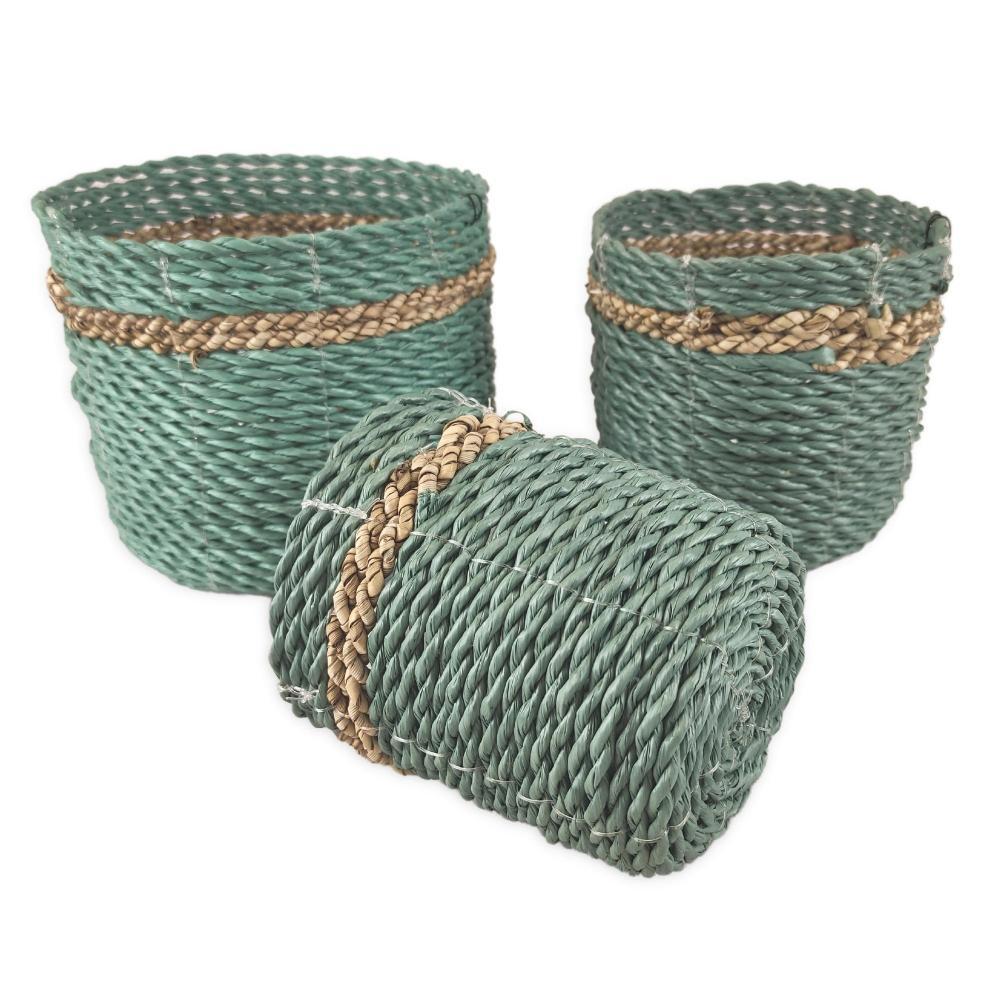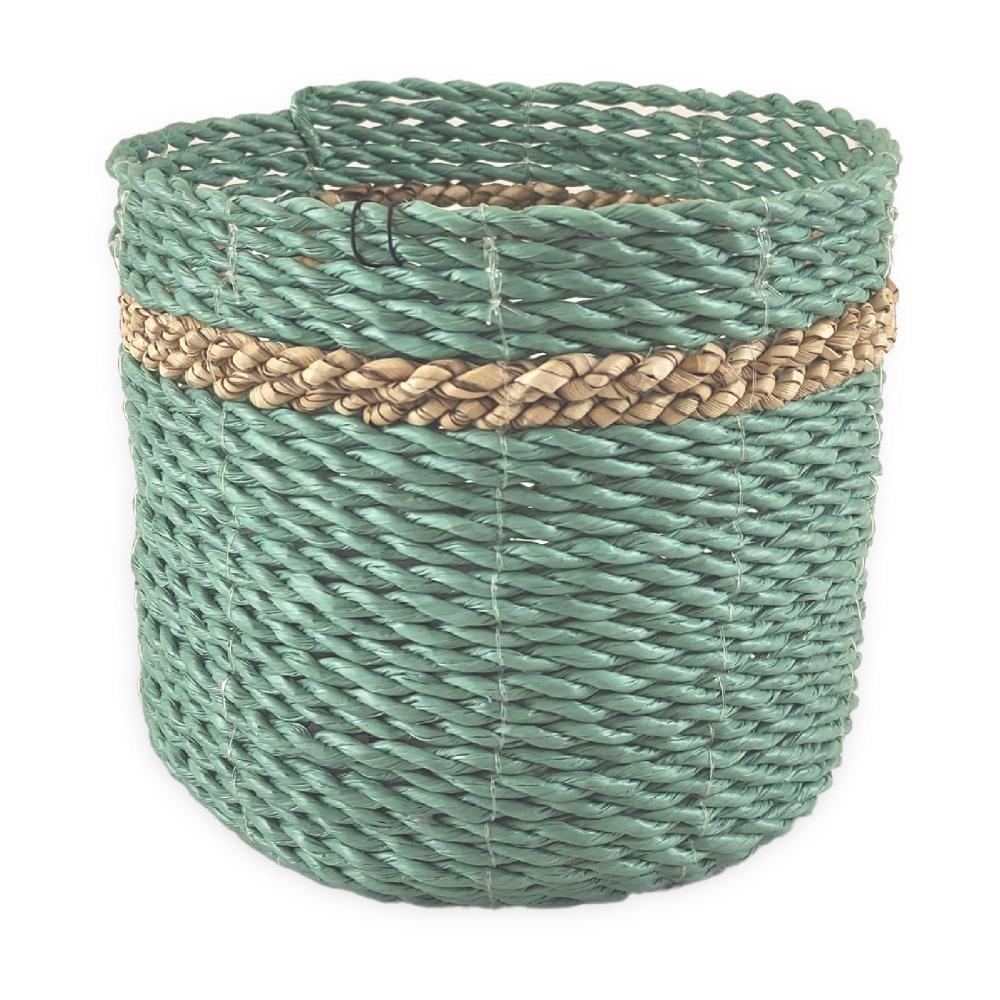 A zöldeskék és természetes barna árnyalatú, tengerifűből fonott kosár igazi boho kiegészítő, ami dísztárgyként és kisebb zöldnövények kaspójaként is nagyszerűen alkalmazható egy játékosan berendezett enteriőrben