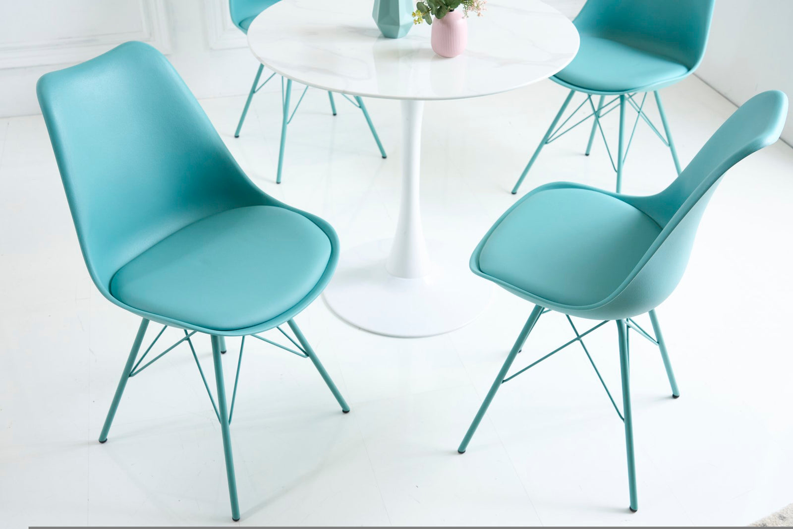 A türkiz szín az egyik legnépszerűbb élénk szín, ami a divatban és a lakberendezésben is gyakran megjelenik. Remek párosítást alkot a fekete-fehér árnyalatokkal, de natúr fa felületekkel is. Friss, élettel teli, üde.