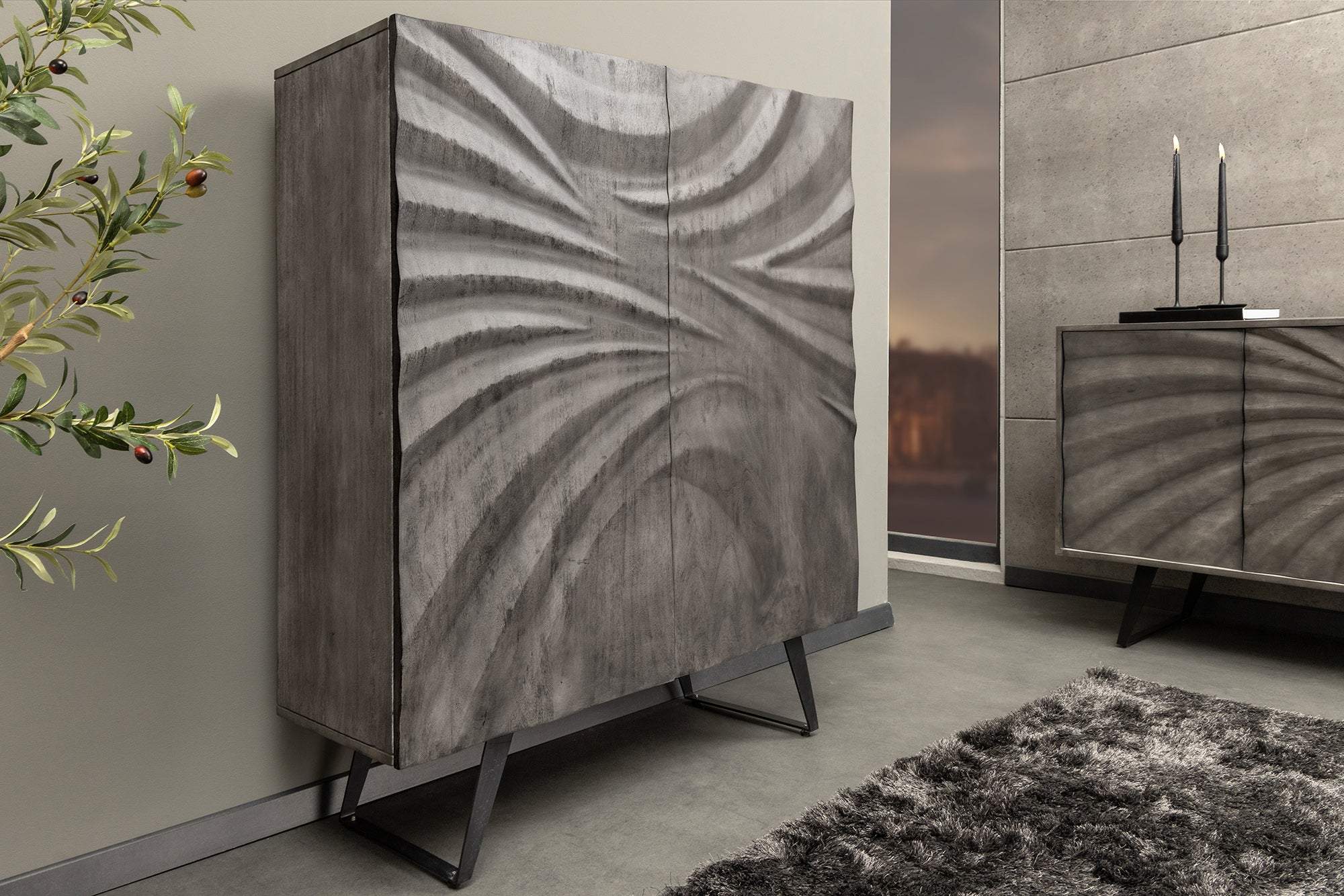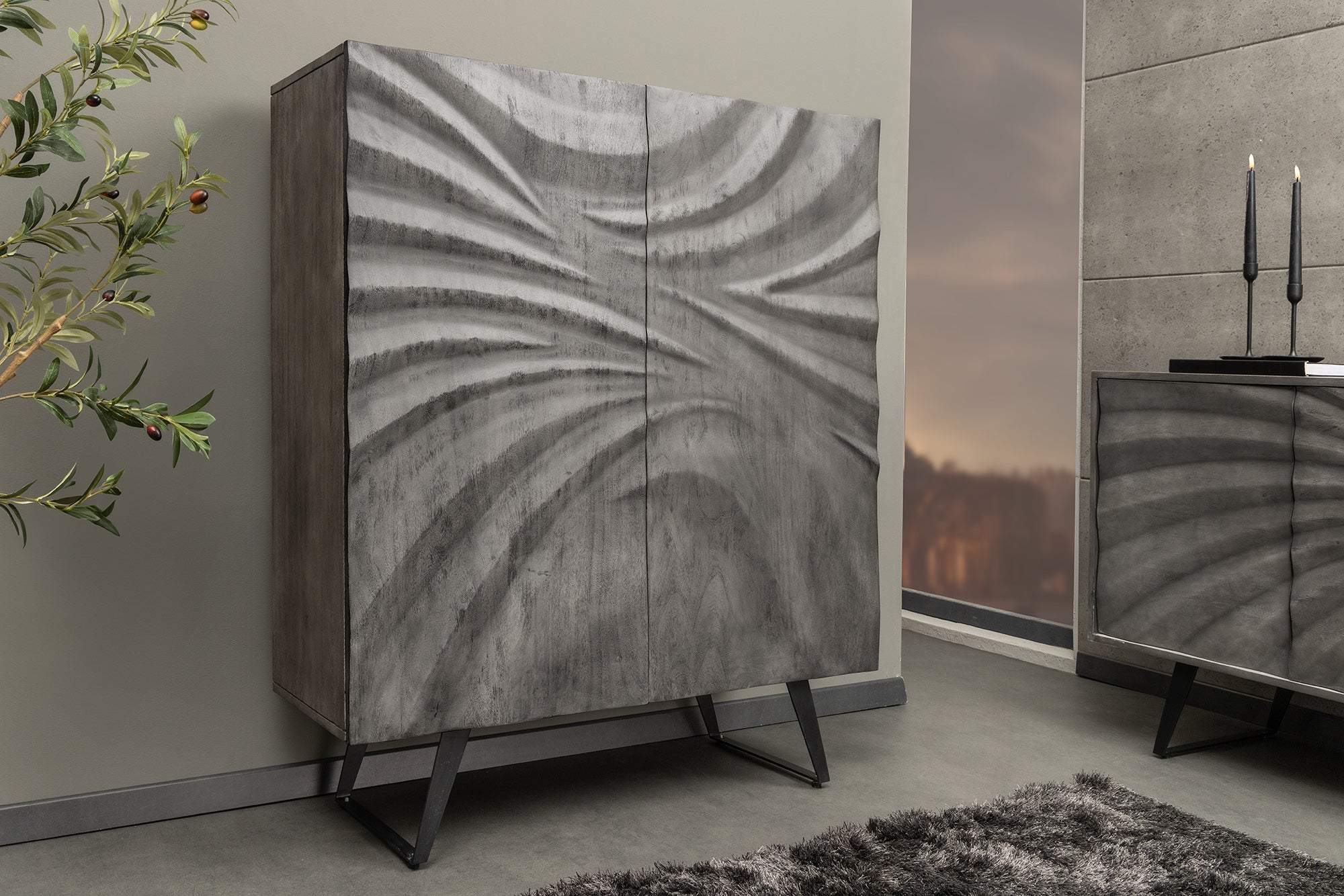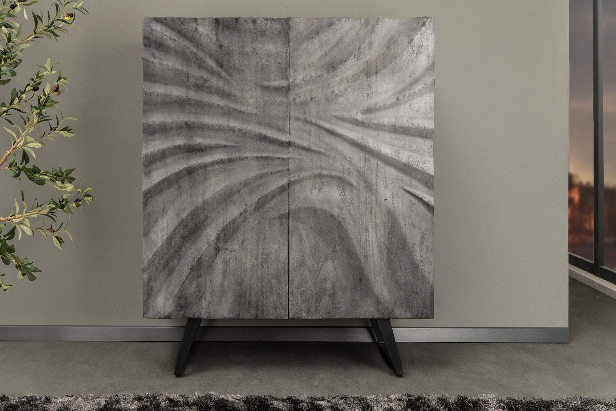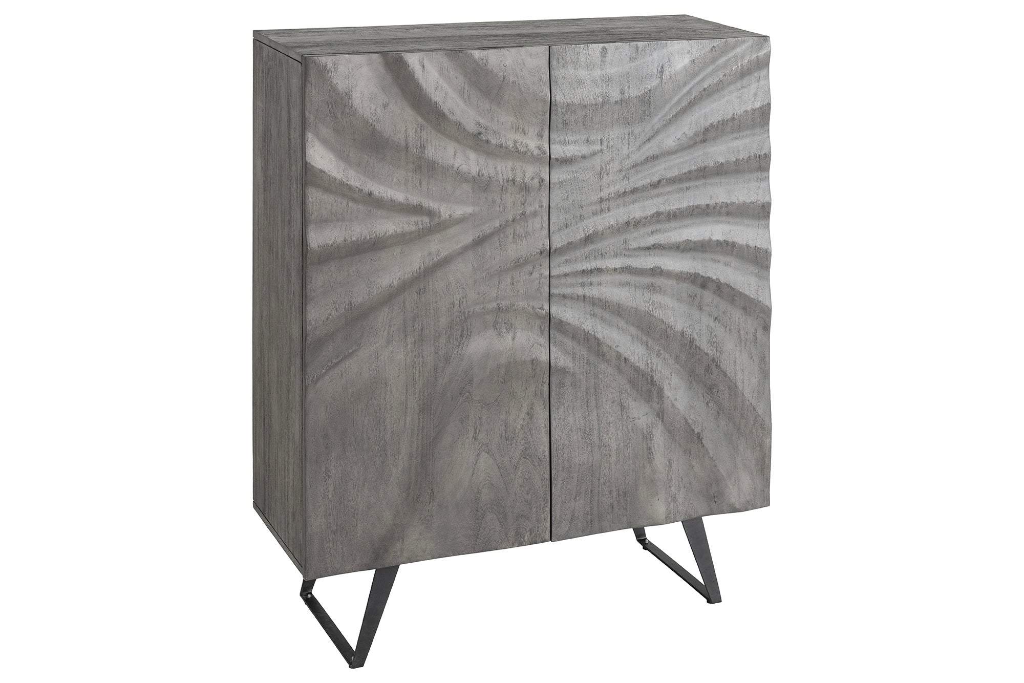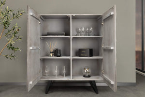 A termék egy elegáns, modern stílusú szekrény, amely tökéletes kiegészítője lehet bármelyik otthonnak vagy irodának. A szekrény gyönyörű, szürke fa hatású felülettel rendelkezik, amelyet finom, ívelt mintázat díszít, így egyedi vizuális élményt nyújt. A kétajtós kialakításnak köszönhetően könnyen hozzáférhetünk a belső térhez, amely bőséges tárolóhelyet biztosít könyvek, dísztárgyak, vagy akár irodai eszközök számára.