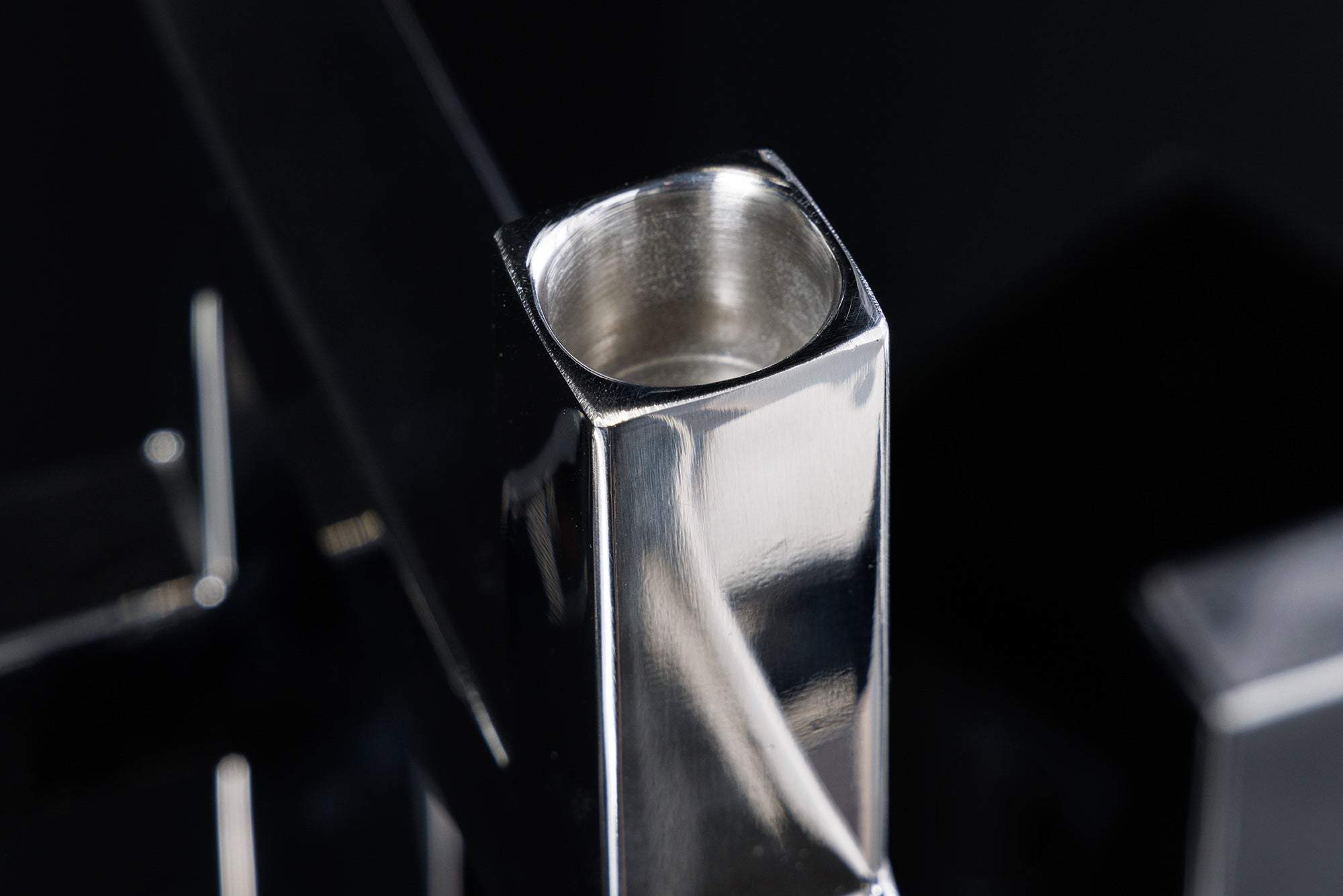 A modern dizájn és a funkcionalitás tökéletes ötvözete, ez a dekoratív gyertyatartó nem csupán egy mindennapi tárgy, hanem a lakberendezés éke is lehet. Az elegáns, krómozott fém felület fényes csillogása bármilyen enteriőrbe könnyedén beleilleszkedik, legyen az modern vagy klasszikus stílusú. Az innovatív geometriai forma különleges vizuális élményt nyújt, miközben stabil tartást biztosít a gyertyáknak.