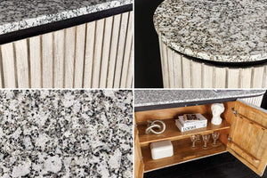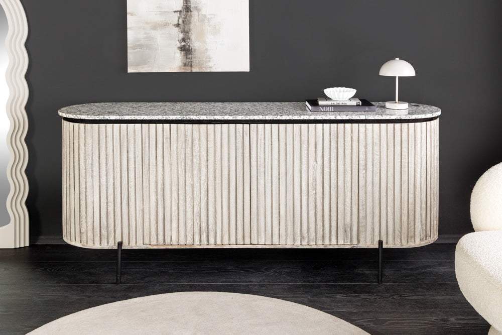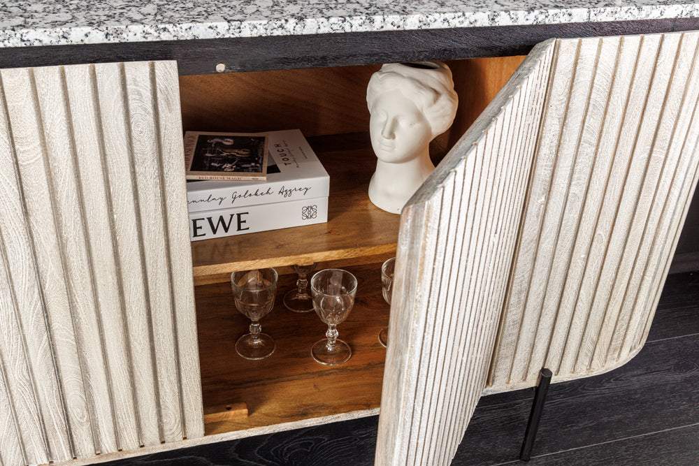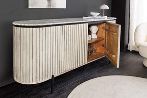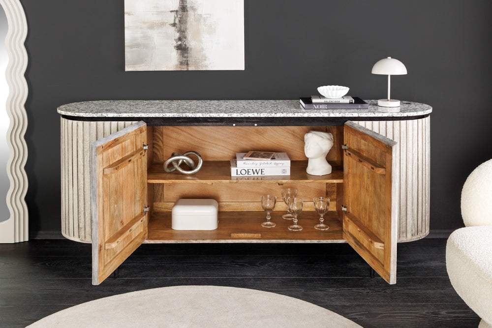 Emeld magasabb szintre a tárolási élményt az ADLON tálalószekrénnyel, amely lenyűgöző szürke mangófából készült, és elegáns fehér márvány felülettel van ellátva! Akár elrejted az étkészletet, akár a kedvenc holmijaidat mutatod be, az ADLON tálalószekrény otthonod könnyed, rendezett hangulatát teremti meg.