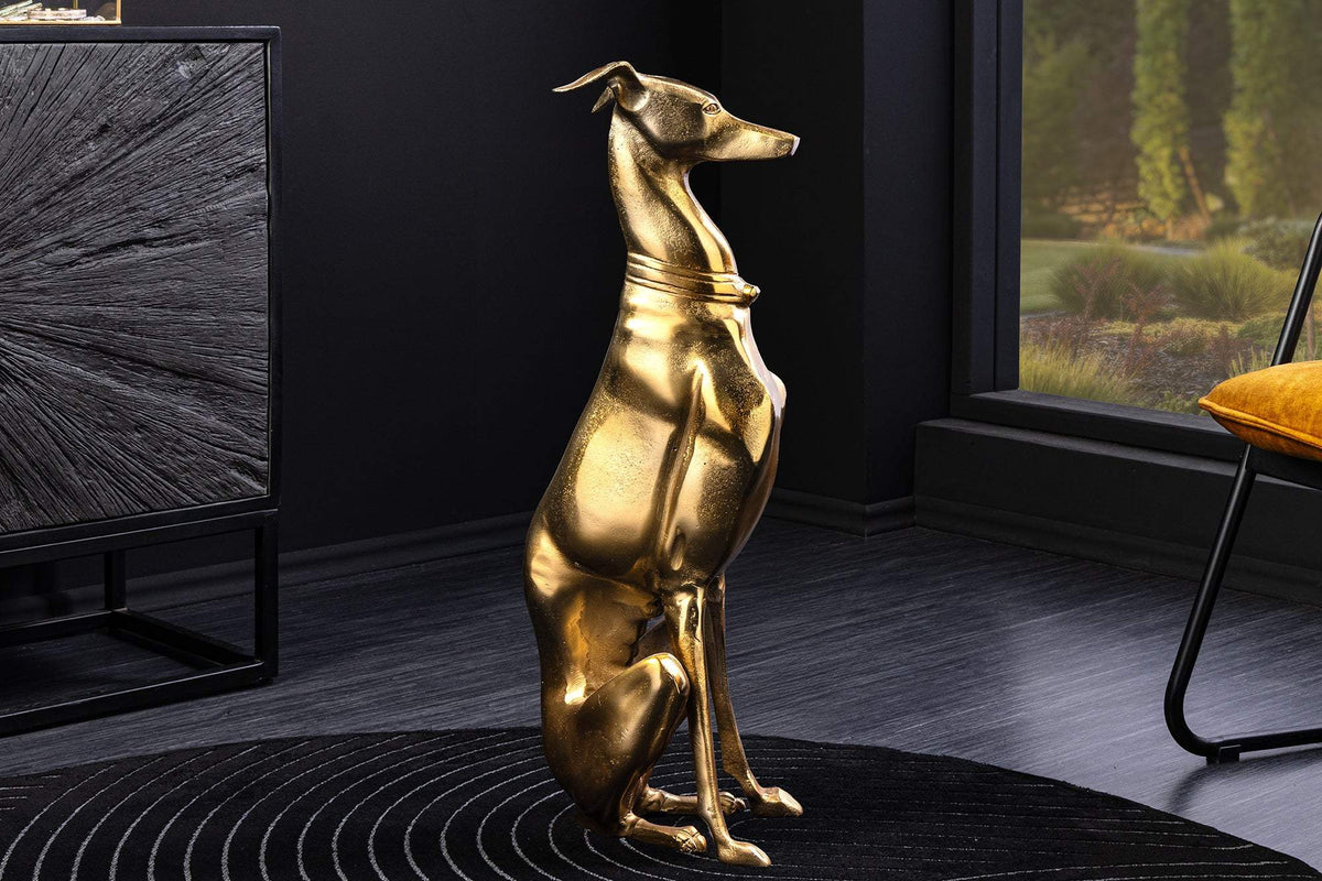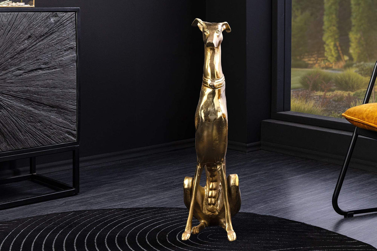 Az arany agár szobor kiváló választás lehet bármilyen stílusú belső térbe. Helyezze a polcra, az asztalra vagy a padlóra, hogy különleges fókuszpontot hozzon létre. Ideális ajándékként is, amely stílust és kifinomultságot sugároz a megajándékozott számára.