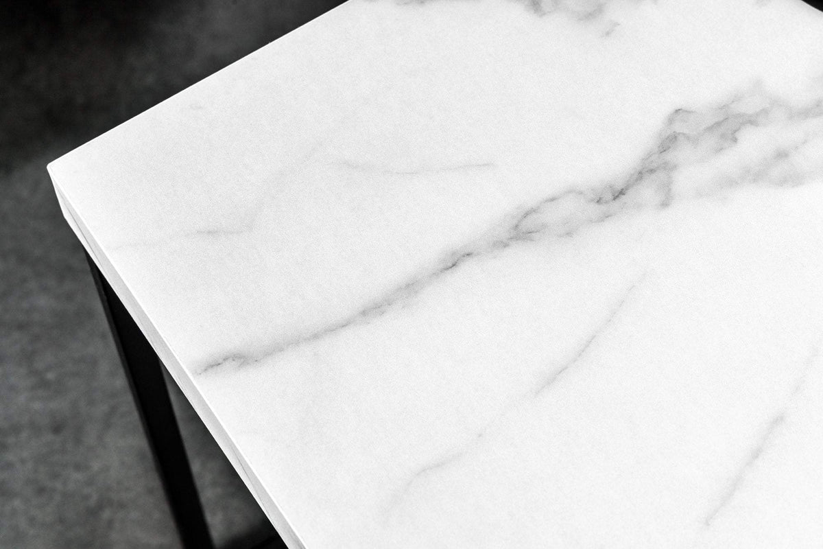 A fém keret biztosítja a stabilitást, miközben könnyed megjelenést kölcsönöz a bútornak. Az időtálló fekete szín eleganciát sugároz, miközben kiemeli a márványhatású felület szépségét. Kompakt mérete ideálissá teszi kisebb helyiségekben is, ahol helytakarékosságra van szükség, de nem szeretnénk lemondani a stílusos megjelenésről.
