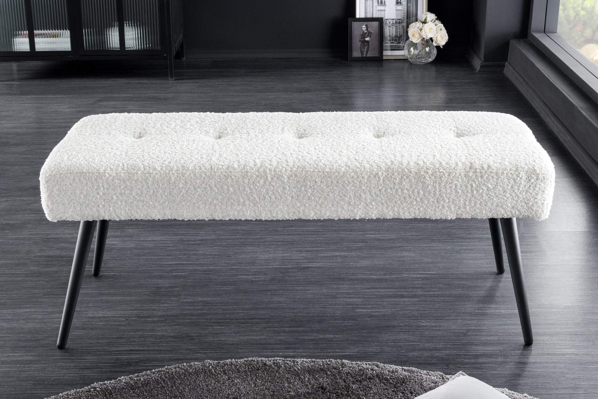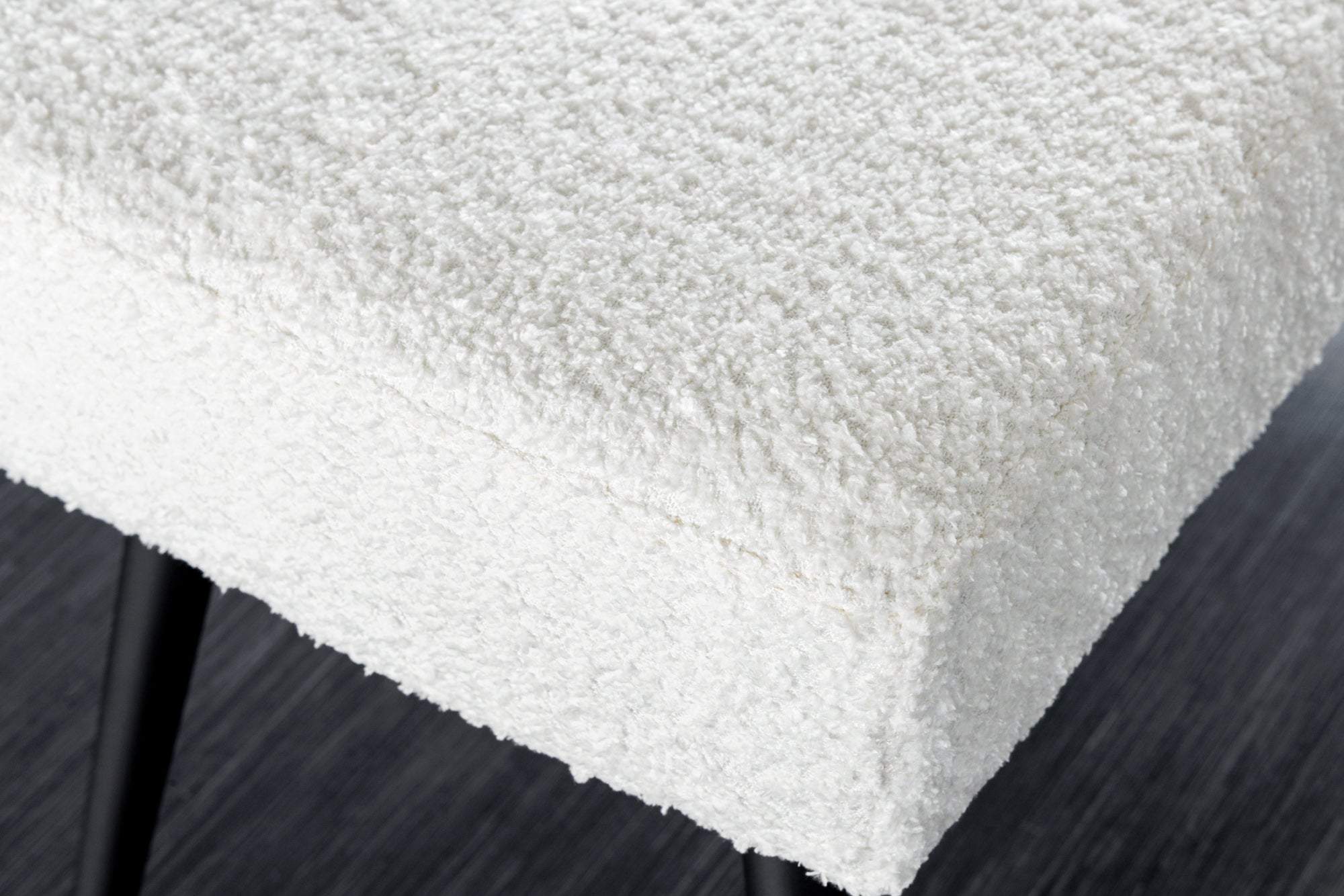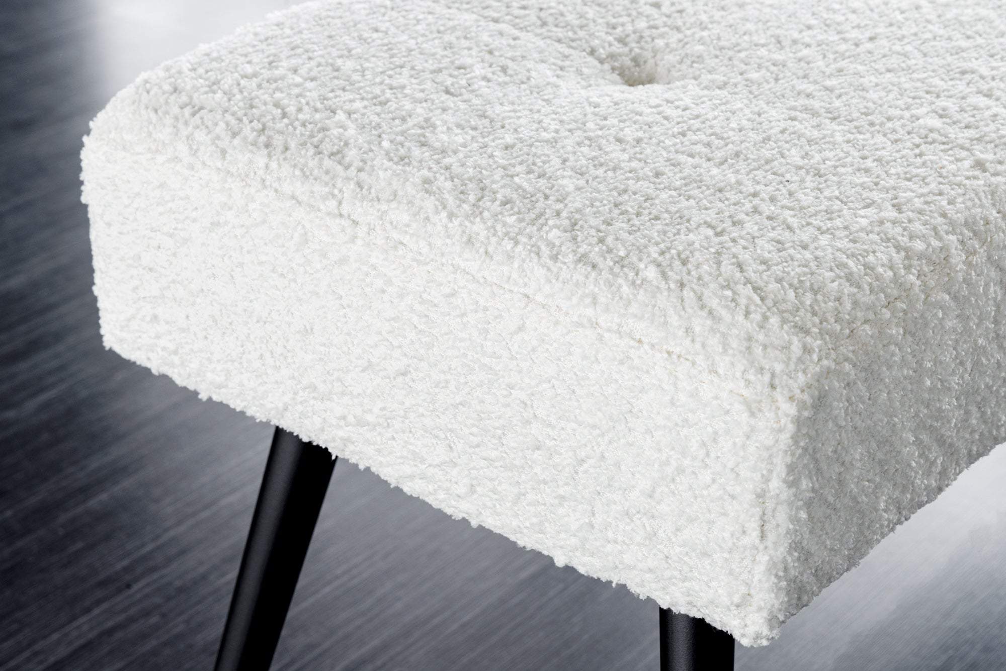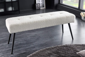 Ez a gyönyörűen megtervezett, elegáns pad tökéletes kiegészítője bármilyen otthoni enteriőrnek. A puha, báránybőrhatású kárpit nemcsak esztétikus, hanem kényelmes is, ami ideálissá teszi a mindennapi használatra. A letisztult, modern dizájn és a fekete fém lábak stílusos megjelenést biztosítanak, miközben stabilitást és tartósságot nyújtanak.