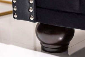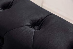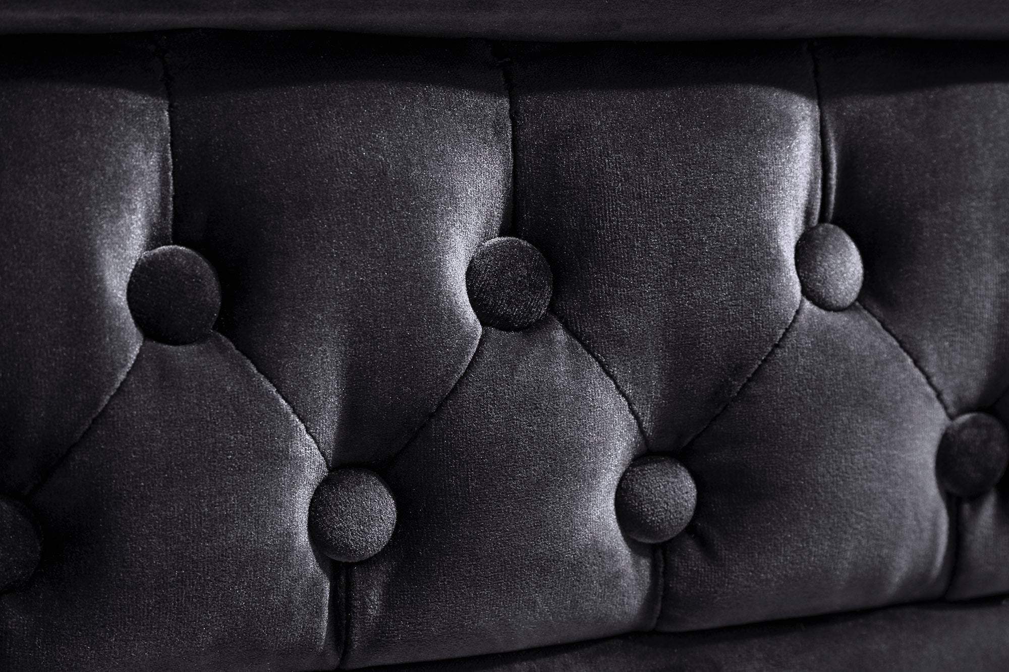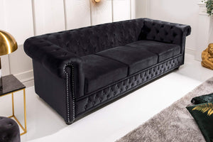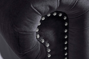 A CHESTERFIELD fekete bársony kanapé az időtlen eleganciát ötvözi a kényelmes kényelemmel, így tökéletes hely a kikapcsolódásra vagy a stílusos vendéglátásra. Plüss rugós ülőfelületével és sikkes sárgaréz szegecsekkel ez a klasszikus darab egy csipetnyi luxust visz bármely nappaliba.