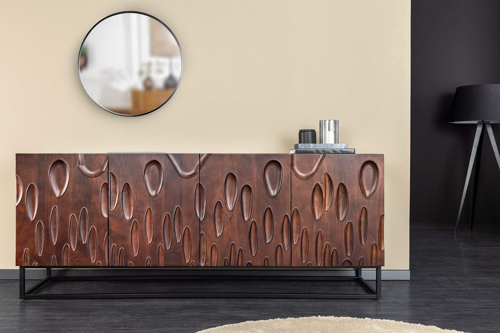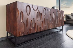 Kiváló minőségű fából készült, ami biztosítja a hosszú élettartamot és a tartósságot. A komód szemet gyönyörködtető, domború mintázata egyedi karaktert kölcsönöz neki, így bármely szobának központi eleme lehet.
