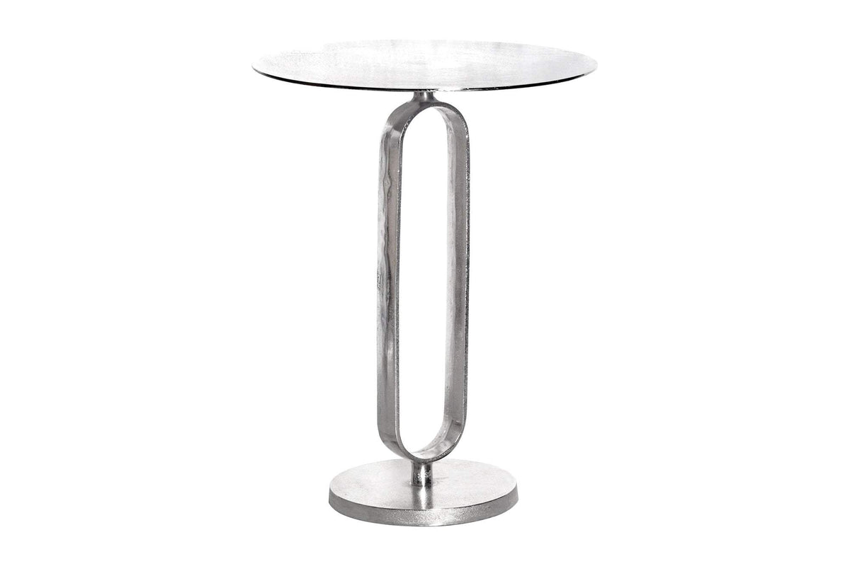 A termék egy elegáns fém asztalka, amely tökéletes kiegészítője lehet bármilyen modern vagy minimalista lakberendezési stílusnak. Letisztult formatervezése és fényes ezüst színe kiemeli a helyiség eleganciáját, miközben praktikus funkciót lát el.