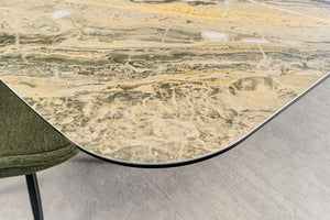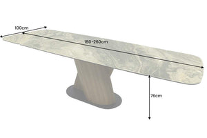 Az ELEMENTS a tökéletes választás a könnyed stílus és a rugalmas terek terének megteremtéséhez, amely a sikkes, bézs márványhatású kerámia munkalapot meleg diófa hatású kerettel ötvözi. Nagyobb összejövetelekhez vagy csendes reggelekhez tervezett, kihúzható asztal modern, hűvös és könnyen tisztítható megjelenést kölcsönöz minden étkezésnek és pillanatnak.