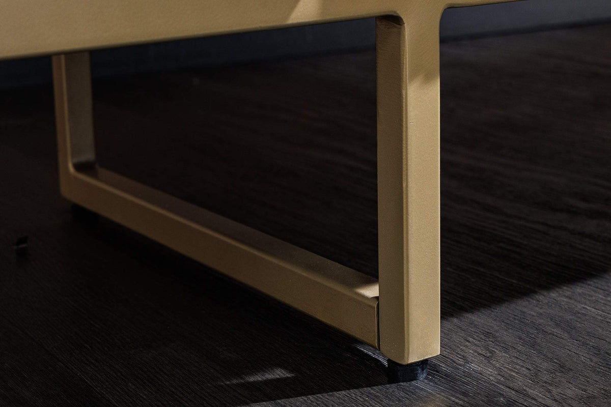 A fém lábak stabil alapot biztosítanak, emellett modern, minimalista dizájnjukkal hozzájárulnak az asztal kortárs megjelenéséhez. A fémlábak arany színe kiemeli az asztal eleganciáját, és egy kis csillogást ad a bútornak.