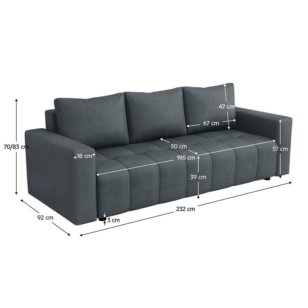 Stílus: Minimalista, modern Szín: Sötétszürke Kialakítás: Mély tűzött ülőfelület, ami eleganciát és karaktert ad a bútornak Három nagy, levehető háttámla párna a maximális komfortért. Vastag karfák, amelyek egyszerre praktikusak és dizájnelemek Kárpitozás: Puha tapintású, strapabíró szövet Lábak: Diszkréten elrejtve, fekete színben Összes MARIK termék