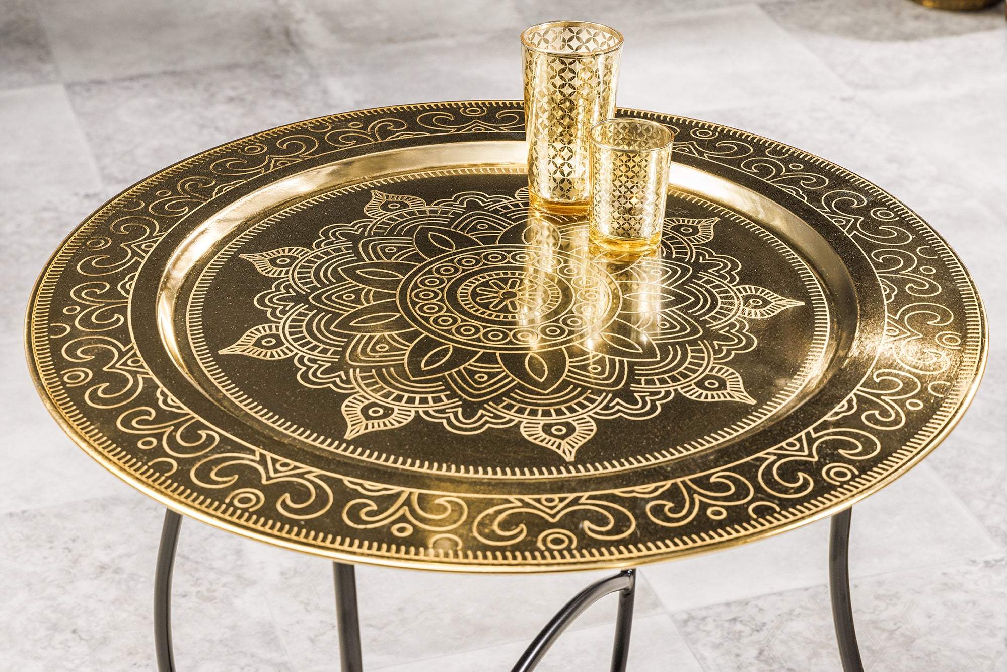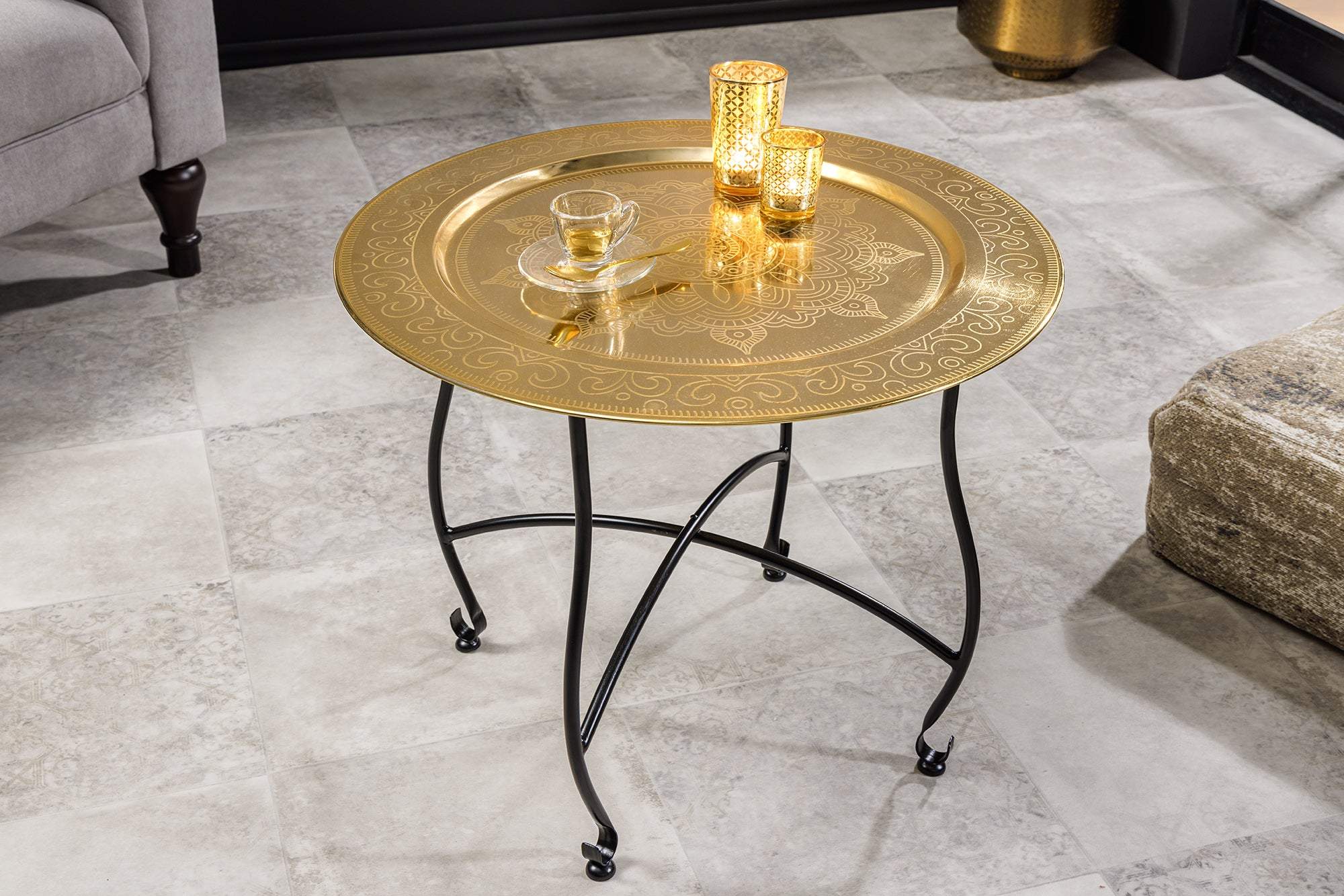 MARRAKESH sárgaréz lerakóasztal levehető tálcával