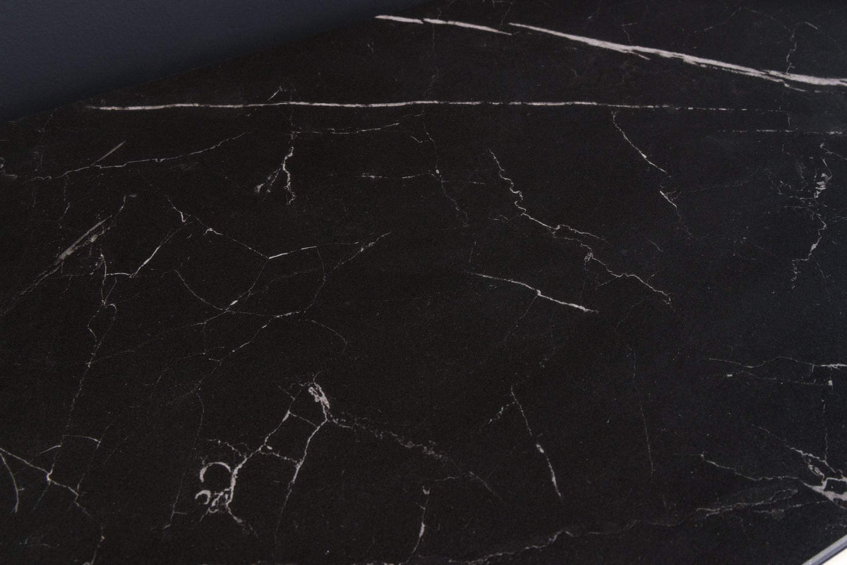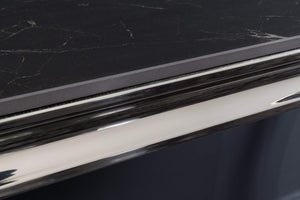 Ez a konzolasztal elegáns és modern megjelenésével bármelyik enteriőr tökéletes kiegészítője lehet. Az asztallap fekete márvány hatású felülete kifinomult stílust kölcsönöz, míg a krómozott, ívelt lábak a stabilitást és a luxus érzetét biztosítják. Az esztétikai szempontokon túl számos praktikus előnnyel is rendelkezik.