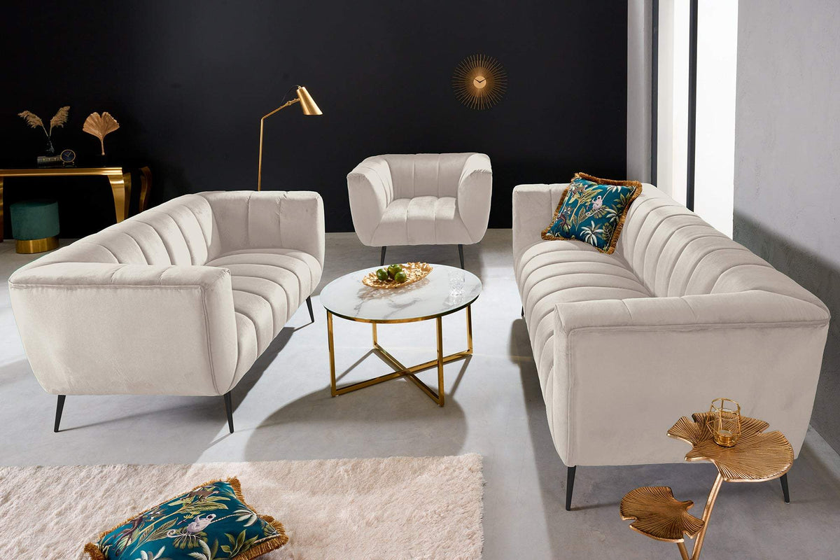 NOBLESSE pezsgőszínű texturált bársony kanapé 2-személyes