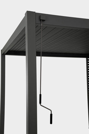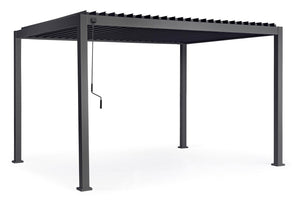 Megjelenése puritán, mégis szemet gyönyörködtető és egy modern stílusú otthon kertjében nagyon jól mutathat. A fogantyú segítségével könnyű megváltoztatni a lamellák dőlésszögét, ezért a pergola nyári záporok ellen is védelmet nyújthat.