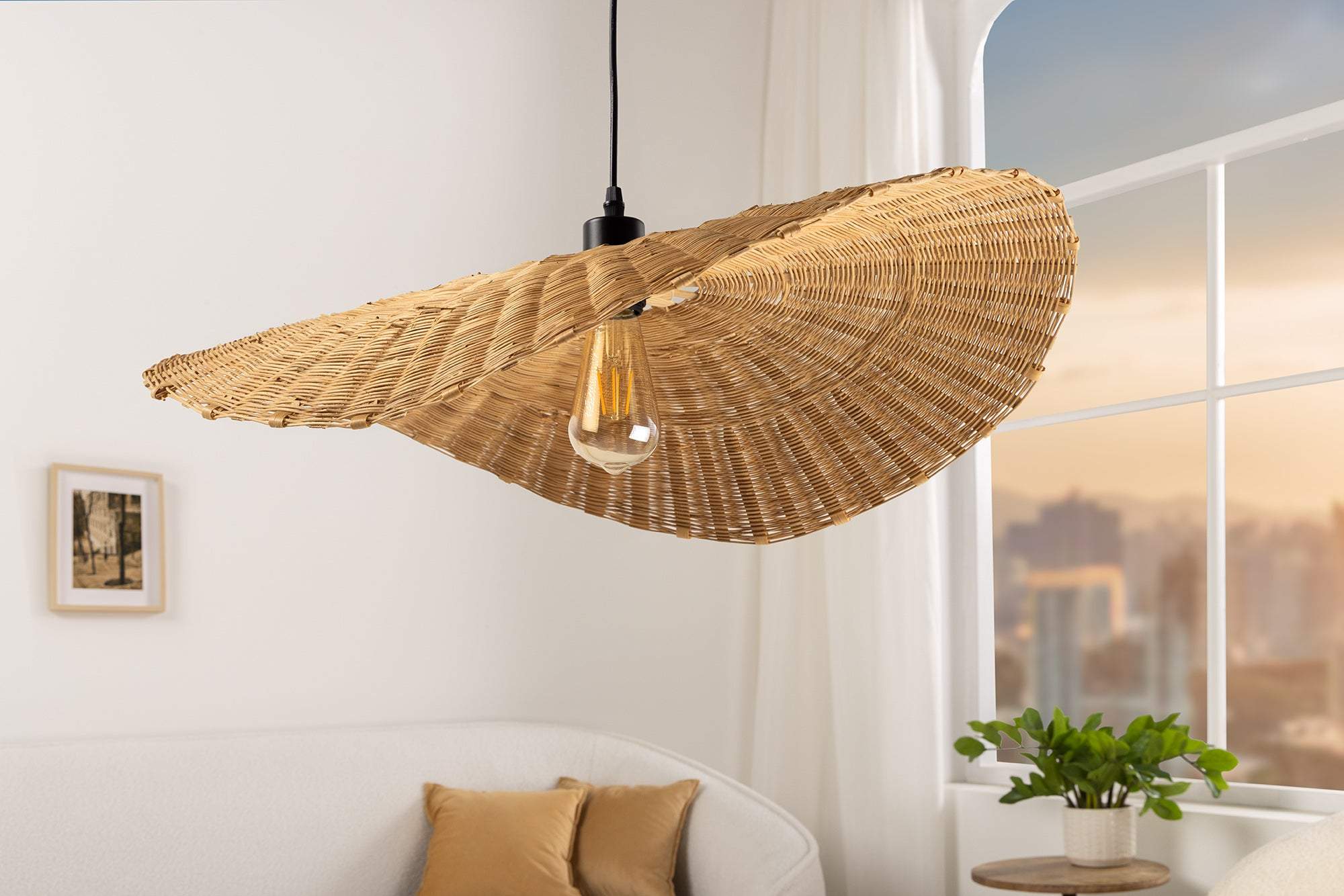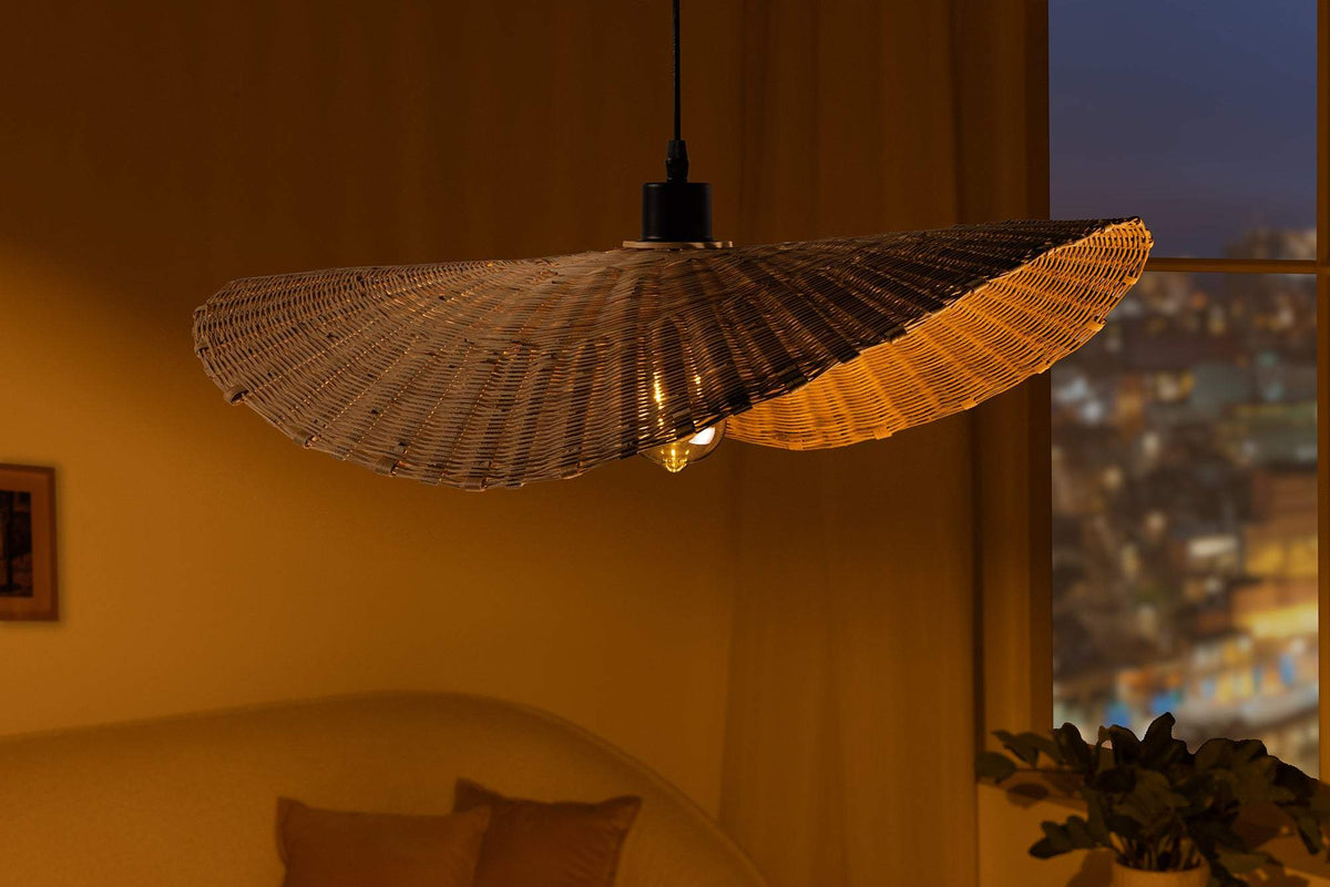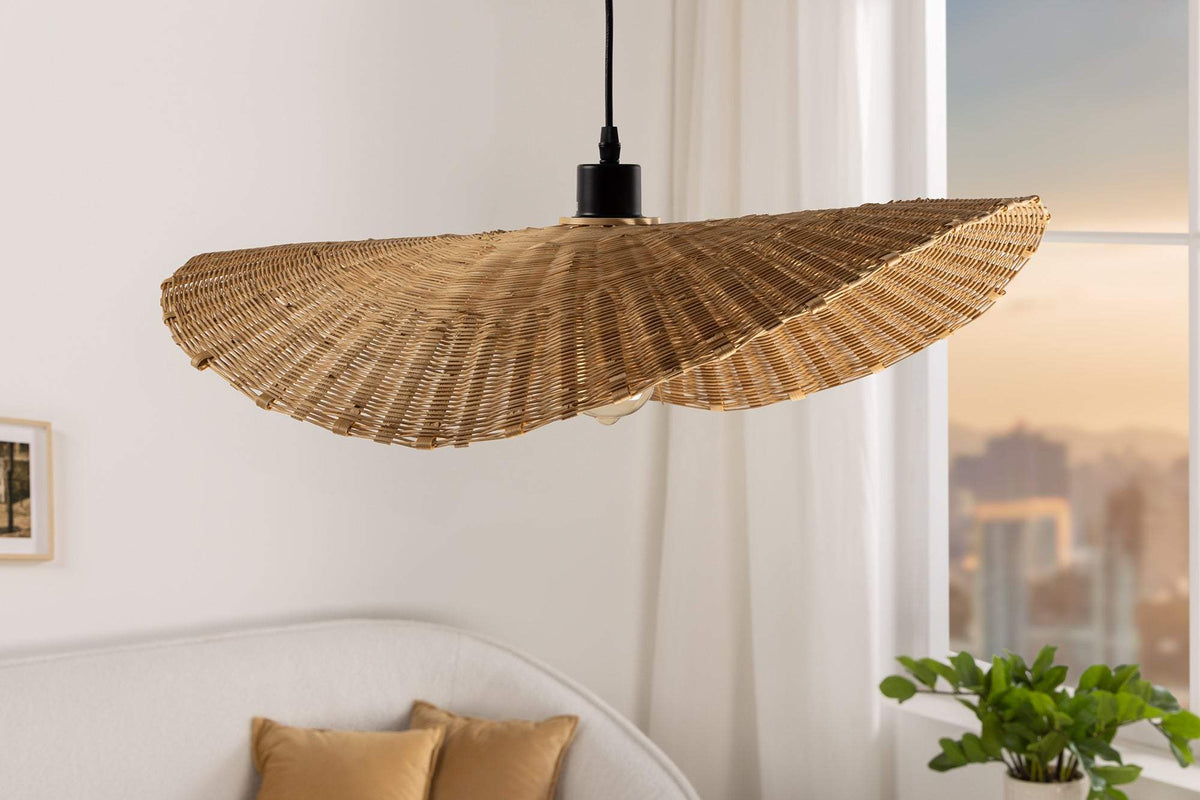 A természetes anyagok eleganciáját és a modern dizájn találkozását tükröző függőlámpa különleges hangulatot kölcsönöz bármilyen enteriőrnek. A gondosan megmunkált rattanból készült lámpabúra természetes és barátságos fényt biztosít, ami ideálisan alkalmas nappalik, étkezők vagy hálószobák megvilágítására. Az aszimmetrikus forma modern és egyedi megjelenést kölcsönöz, amely vonzza a tekintetet és esztétikai központjává válik a helyiségnek.