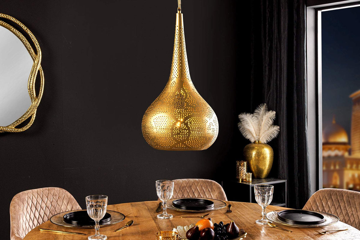 A varázslatos légkör megteremtése otthonában most egyszerűbb, mint valaha ezzel az elegáns függőlámpával. Az aranyszínű, csepp alakú lámpa modern és hagyományos dizájnelemeket ötvöz, így bármely enteriőr díszévé válhat.