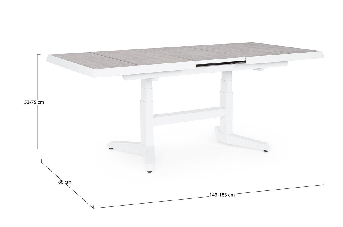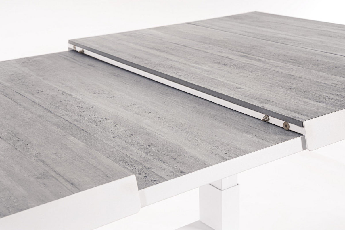 ROBERT fehér és szürke kerámia állítható magasságú, bővíthető kerti asztal 143-183cm