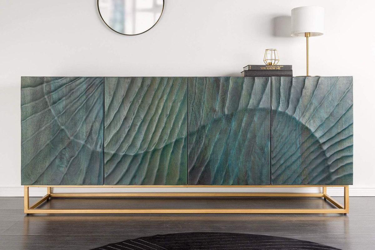 A termék egy elegáns és modern stílusú szekrény, amely tökéletes választás a nappali vagy az étkező berendezéséhez. Letisztult dizájnja azonnal vonzza a tekintetet, köszönhetően a különleges hullámos mintázatú frontjának, amely egyediséget és eleganciát kölcsönöz a bútordarabnak.