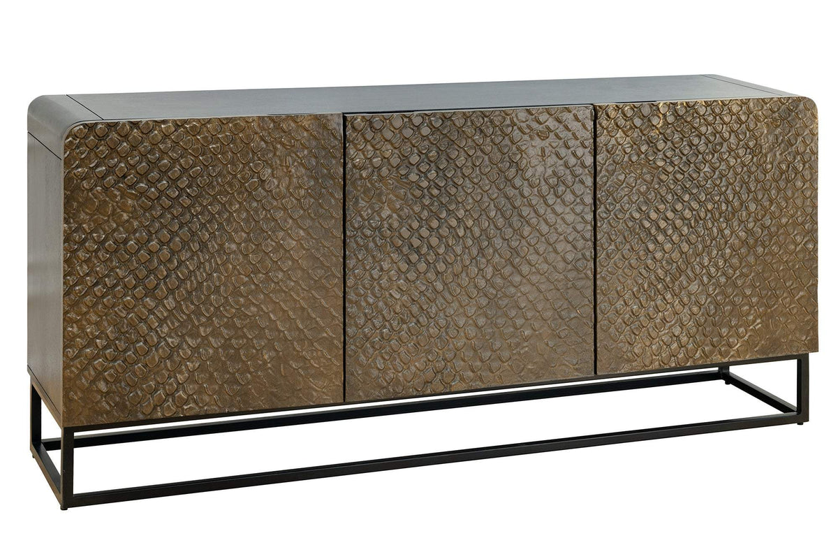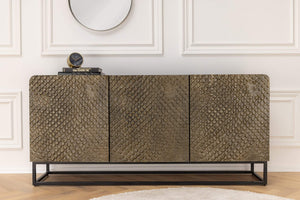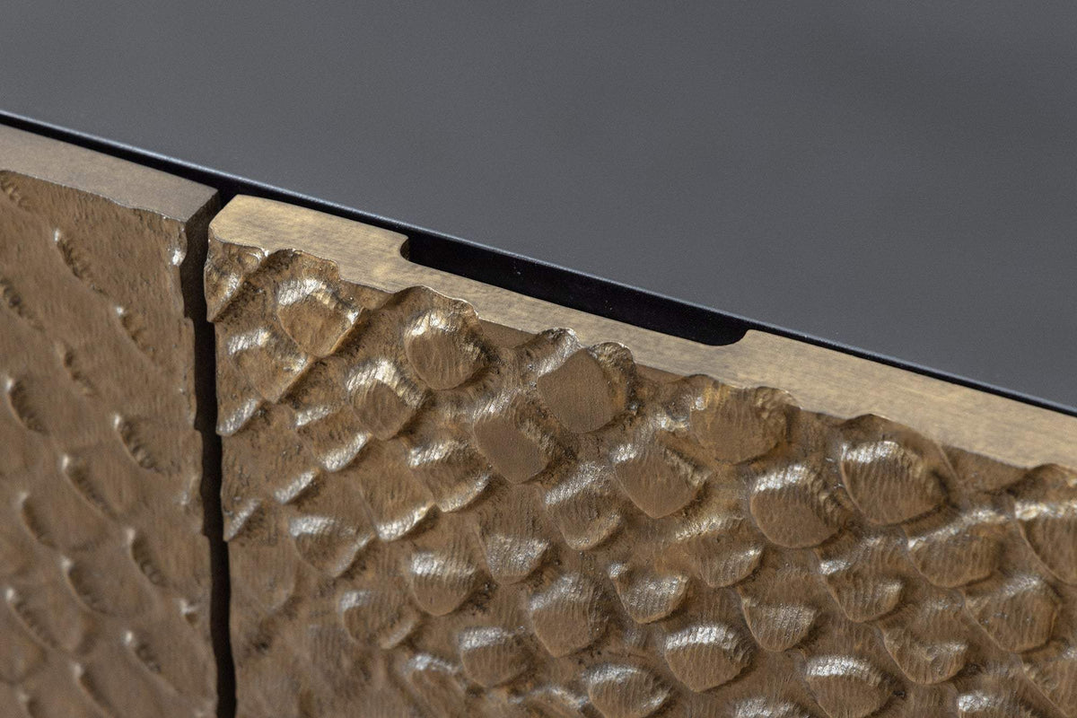 Ez a lenyűgöző bútor egy modern, elegáns komód, amely tökéletesen illeszkedik bármely modern enteriőrbe. A termék kialakítása letisztult vonalvezetésű, amely minimalista stílusával emeli otthona vagy irodája esztétikai színvonalát. Aranyszínű, texturált felülete különleges és prémium megjelenést biztosít, így garantáltan a figyelem középpontjába kerül.