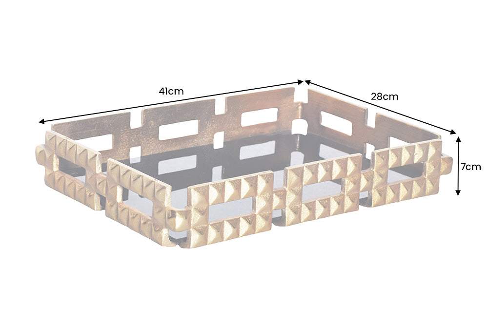 A termék egy elegáns, aranyszínű tálca, amely ideális kiegészítője lehet bármely otthonnak. A tálca kiváló minőségű anyagokból készült, ami biztosítja a tartósságot és a hosszú élettartamot. Az aranyszínű felület prémium megjelenést kölcsönöz, amely bármely enteriőr stílusát képes feldobni.