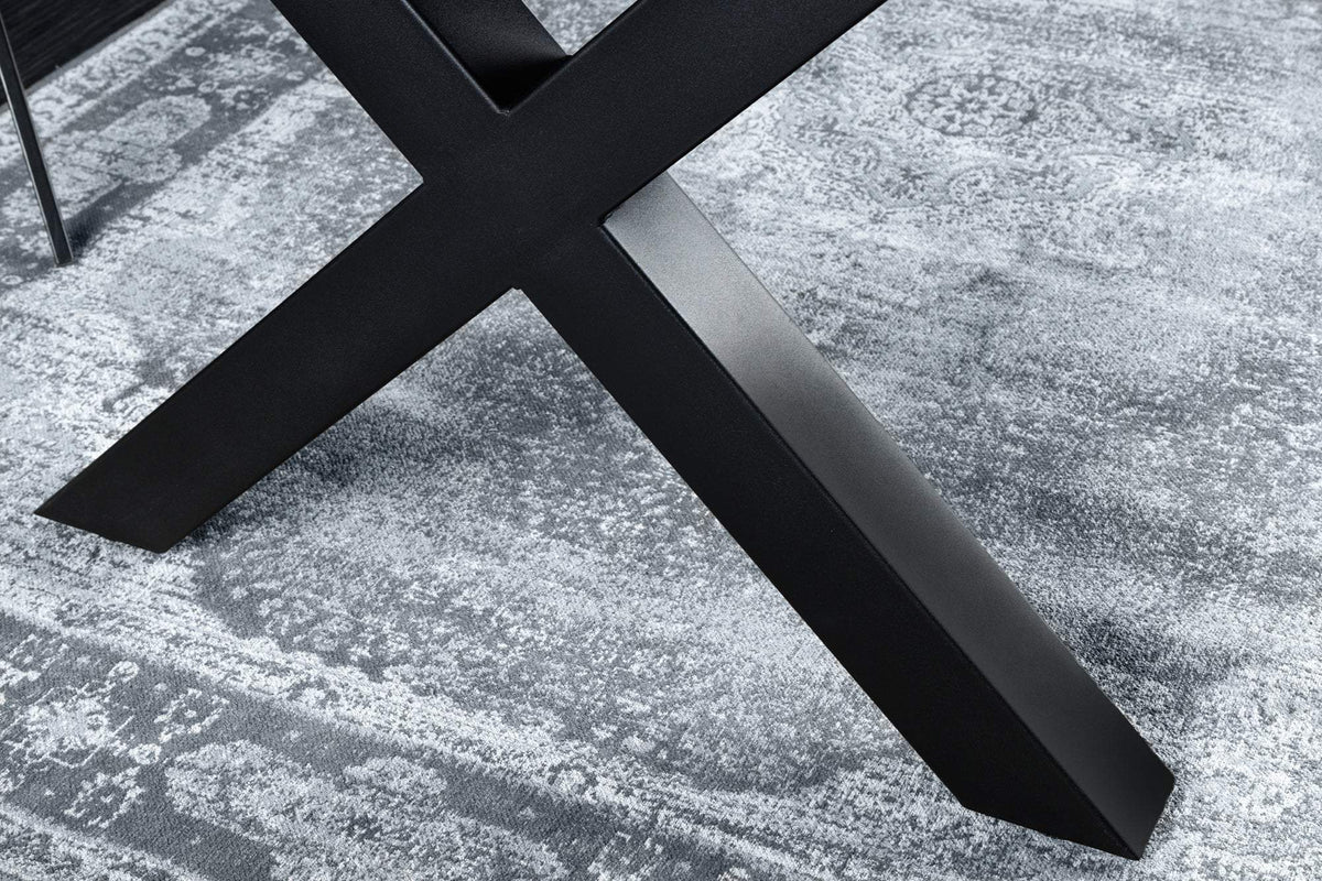 A modern étkezőasztal elegáns és időtálló dizájnnal, amely tökéletesen illeszkedik bármely otthonba. Az asztallap lenyűgöző faerezetű mintázatával természetes és rusztikus megjelenést kölcsönöz, miközben a sima, szürke felület modern stílust sugároz. Az asztal masszív fém lábai biztosítják a stabilitást és a tartósságot, így hosszú távon is megbízható választás.