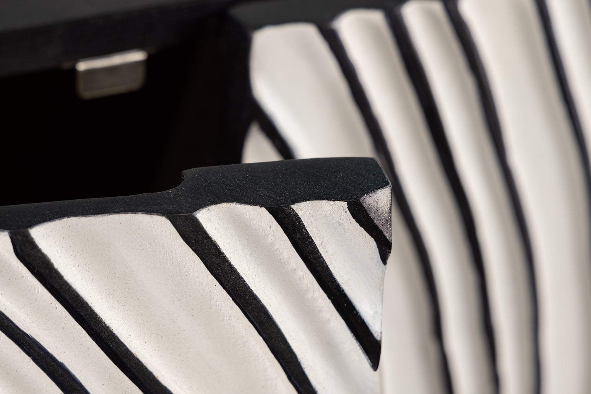 Ez a kiváló minőségű, modern stílusú tálalószekrény tökéletes választás mindazok számára, akik funkcionalitást keresnek a stílusos megjelenés mellett. Az elegáns, faerezetet idéző mintázat különleges vizuális élményt nyújt, amely minden otthon díszévé válik.